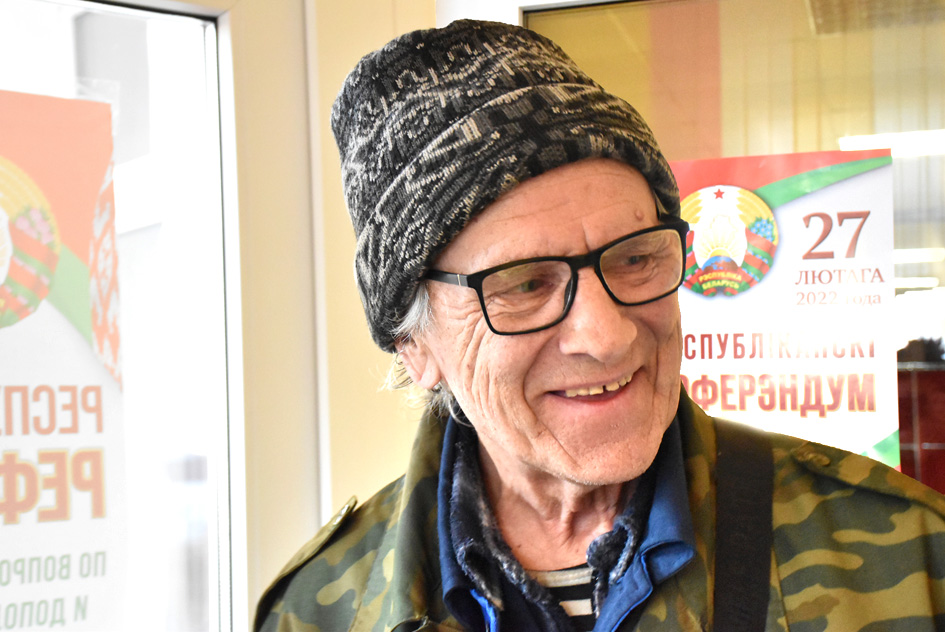 А вось наступны галасуючы, як высветлілася, якраз наадварот вяртаўся з працы. Уладзімір Дарашчук, нягледзячы на свой пенсійны ўзрост у 77 гадоў, яшчэ працуе – вартаўніком у сельгасфіліяле “Ома”.