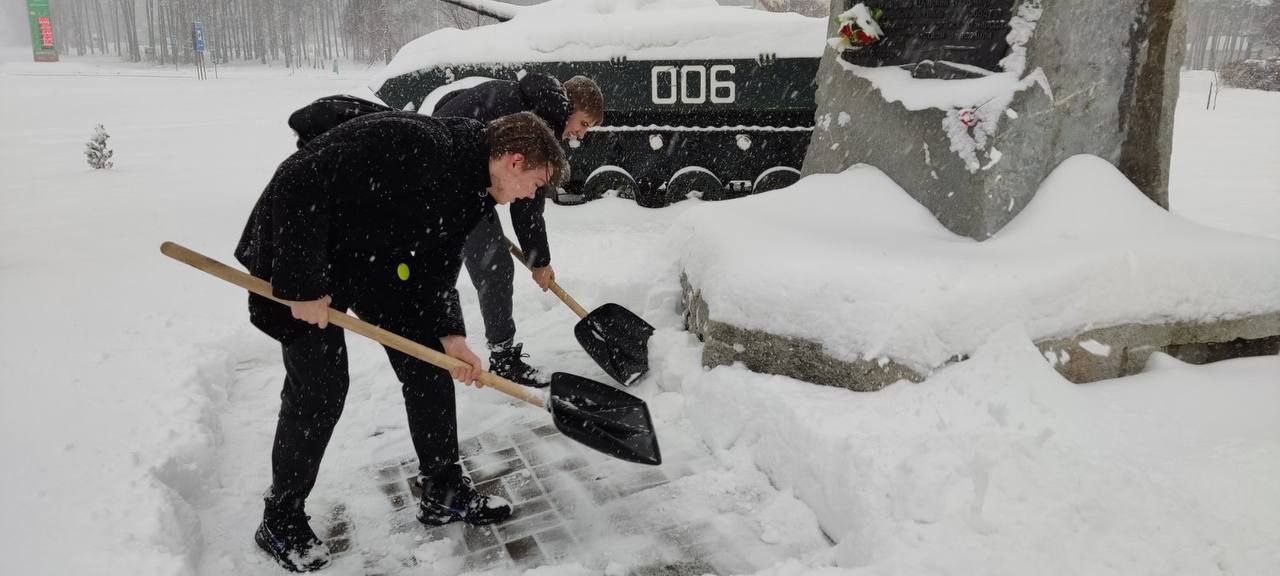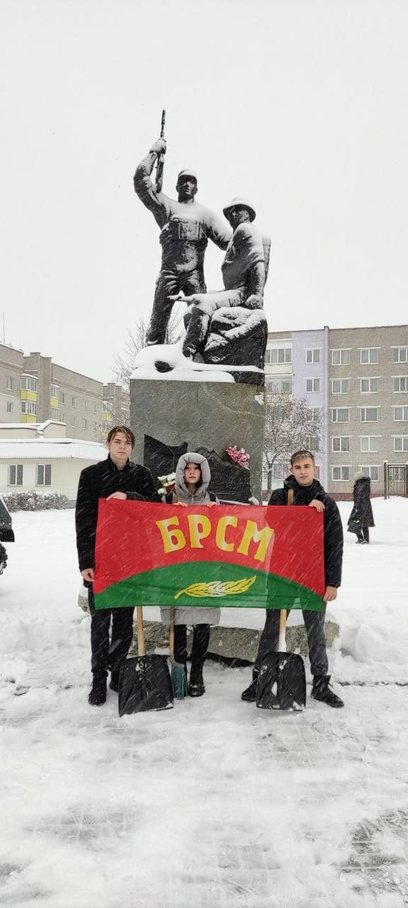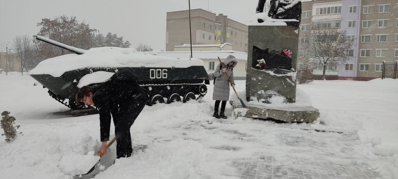 10 декабря активисты БРСМ во главе с секретарем Александром Кандралем ПО «Березинская гимназии» приняли участие в акции «Уберем снег вместе» на памятнике воинов- интернационалистов. Труд крут!