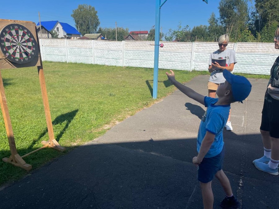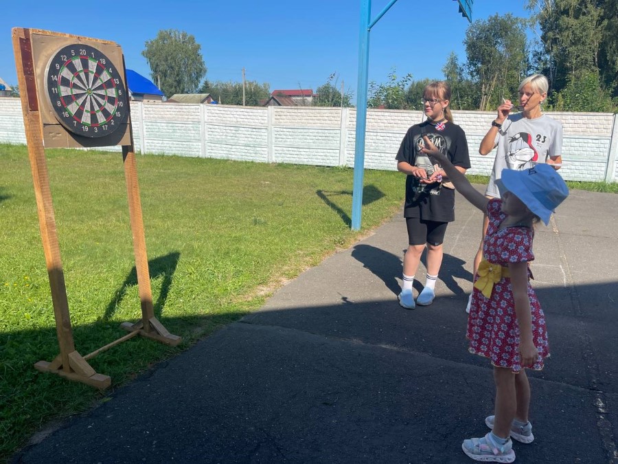 Ребята соревновались в дартсе «Меткий стрелок», бросание мяча в кольцо и многое другое.
