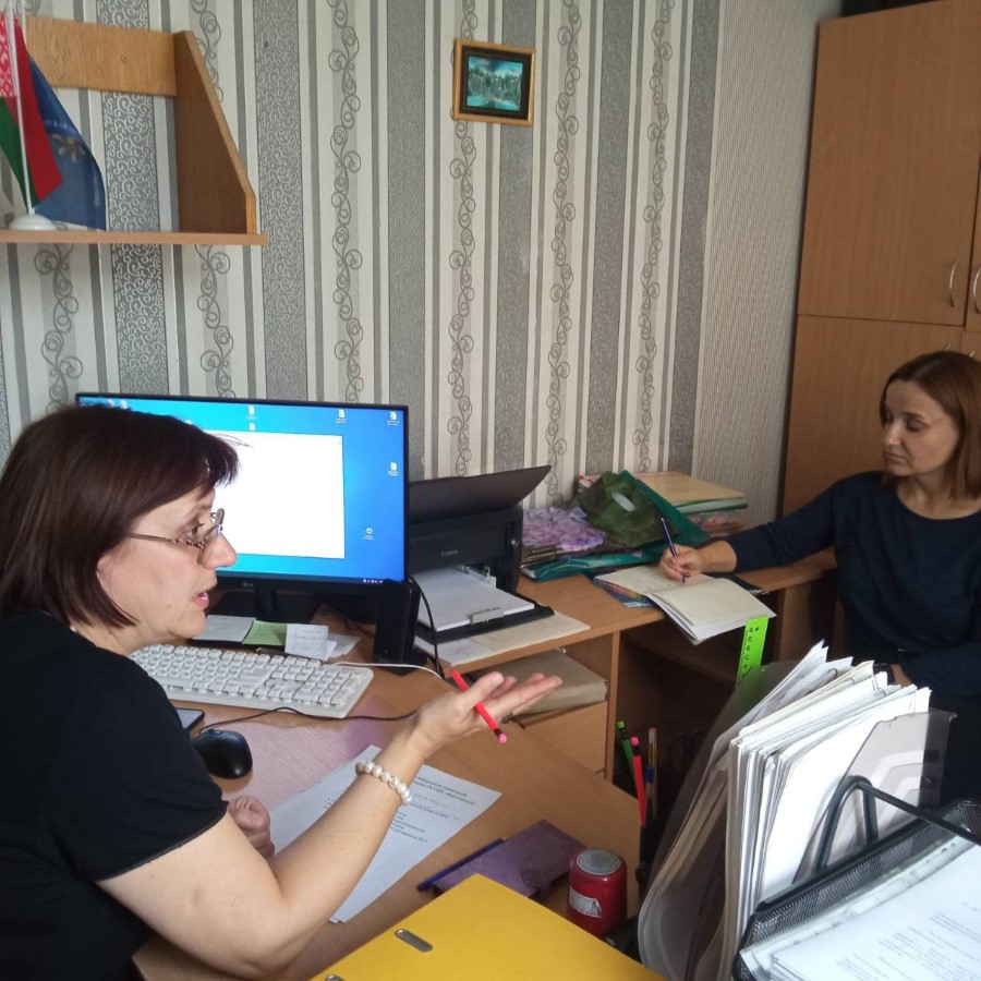 Оказание методической помощи в ходе мониторинга профсоюзной дисциплины, подготовка к отчетно-выборной конференции, перспективы в работе обсуждали с председателем районного объединения профсоюзов Еленой Токан и членами профкома Екатериной Красовской и Ольгой Букатой.