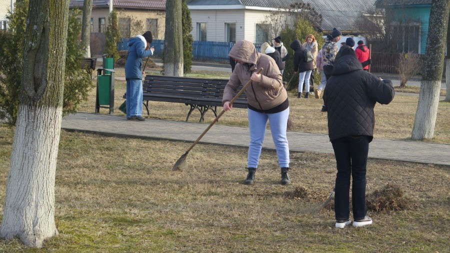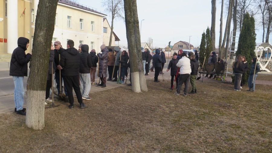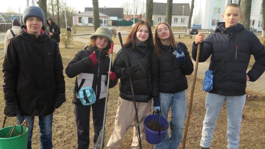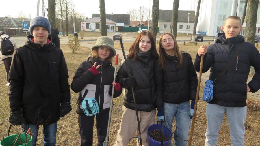 Утром 12 марта старшеклассники средних школ № 2 и №3 встретились в сквере напротив библиотеки, чтобы поучаствовать в субботнике.