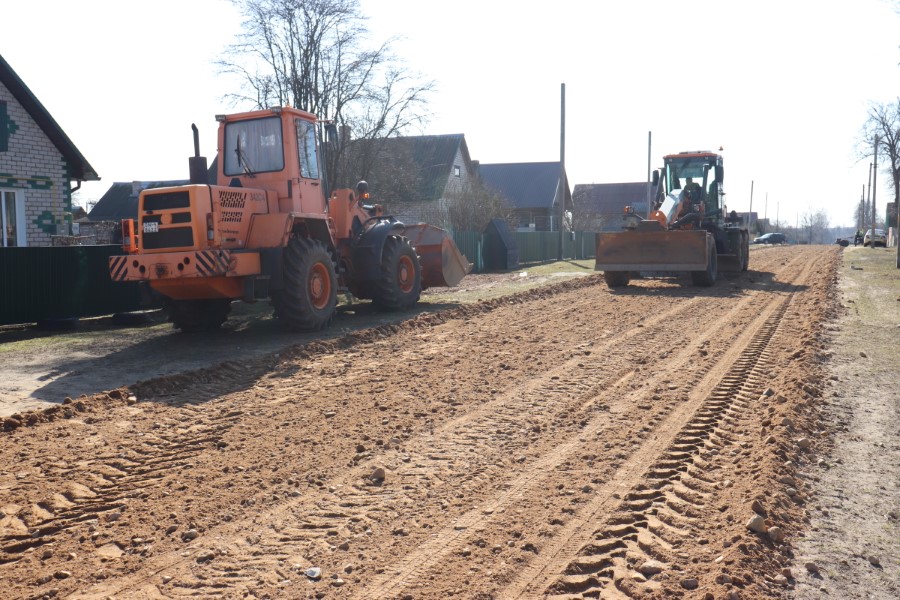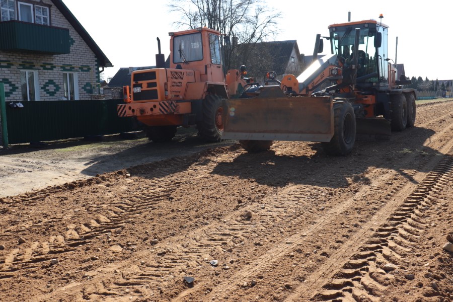 Тут заняты погрузчик, укатчик, грейдер, а также автомобиль, доставляющий гравий. Хватает хлопот и другим дорожным рабочим. Уже сейчас улица выглядит помолодевшей и привлекательной. Можно только представить, как она изменится после того, как «оденется» в асфальт.