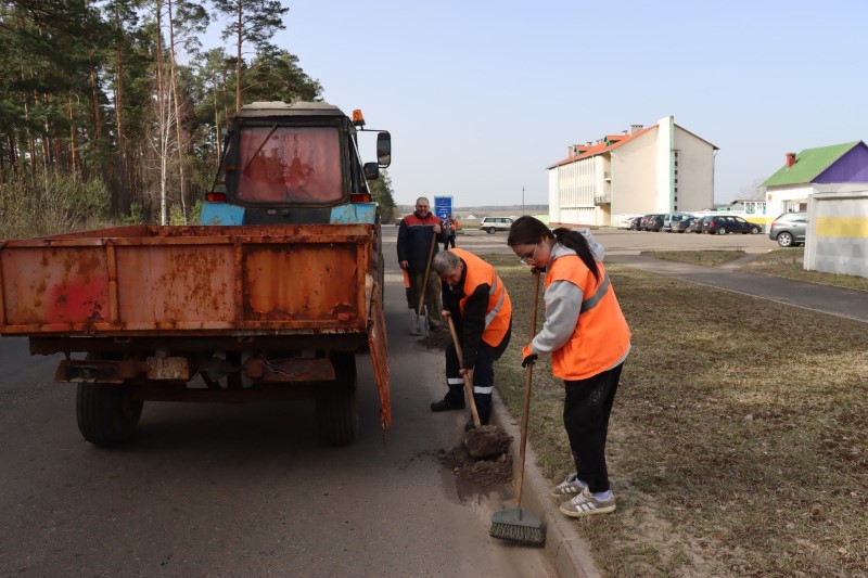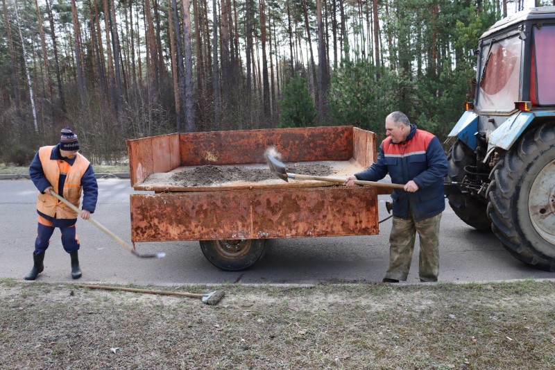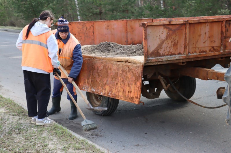 Отлично трудится сегодня бригада по благоустройству Березинского ЖКХ на уборке улицы Зелёной. Работники старательно очищают дорогу от песка, делают нашу жизнь чище.