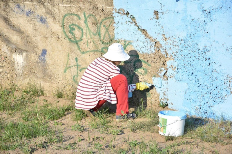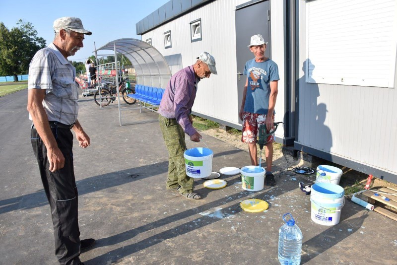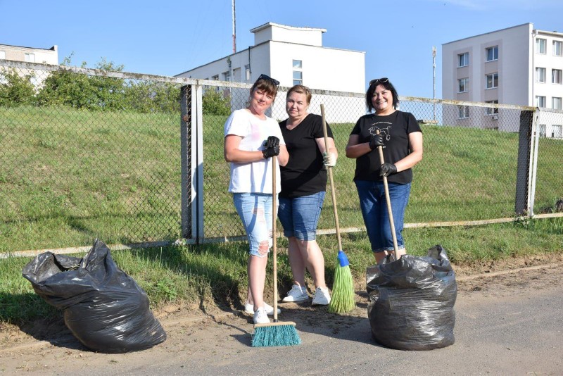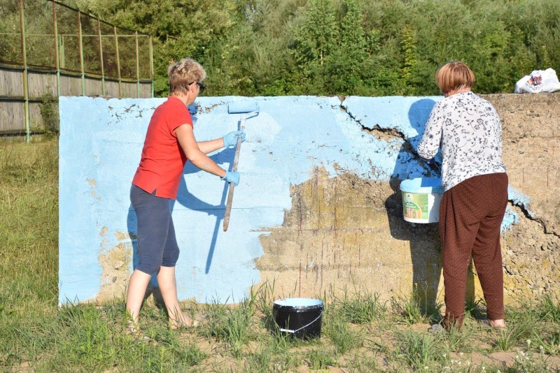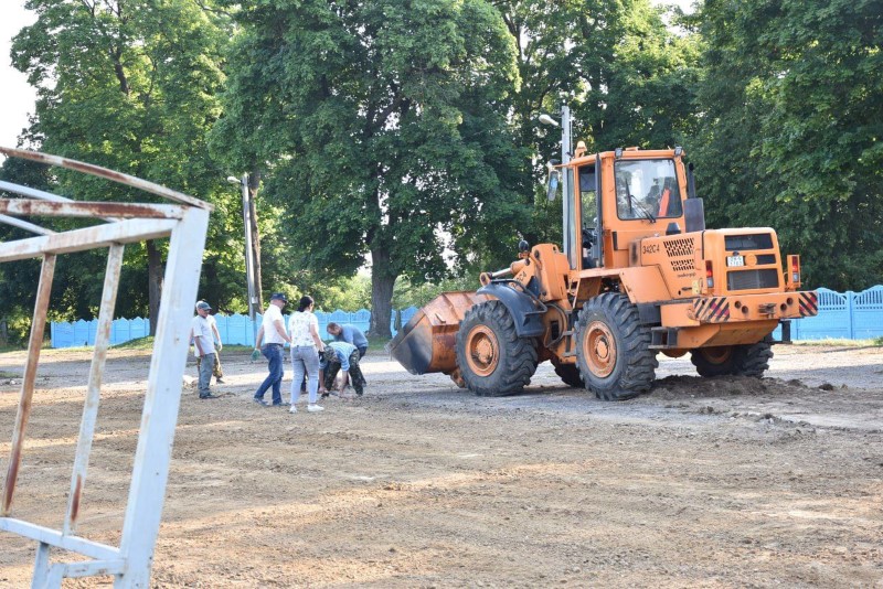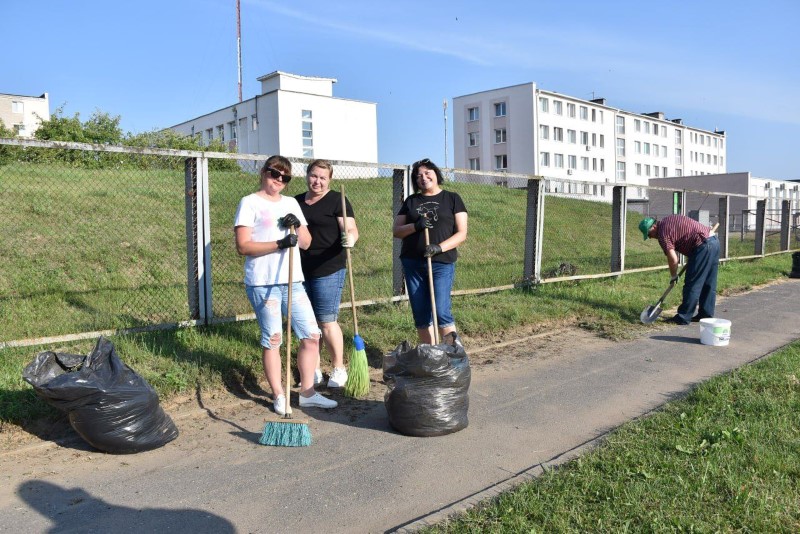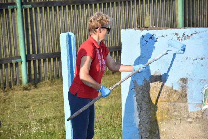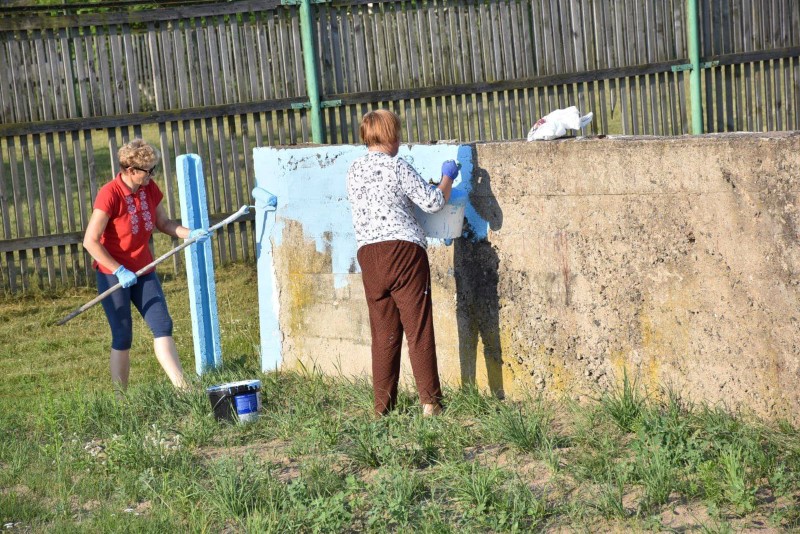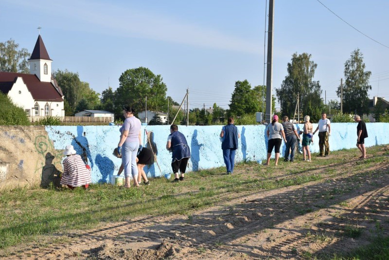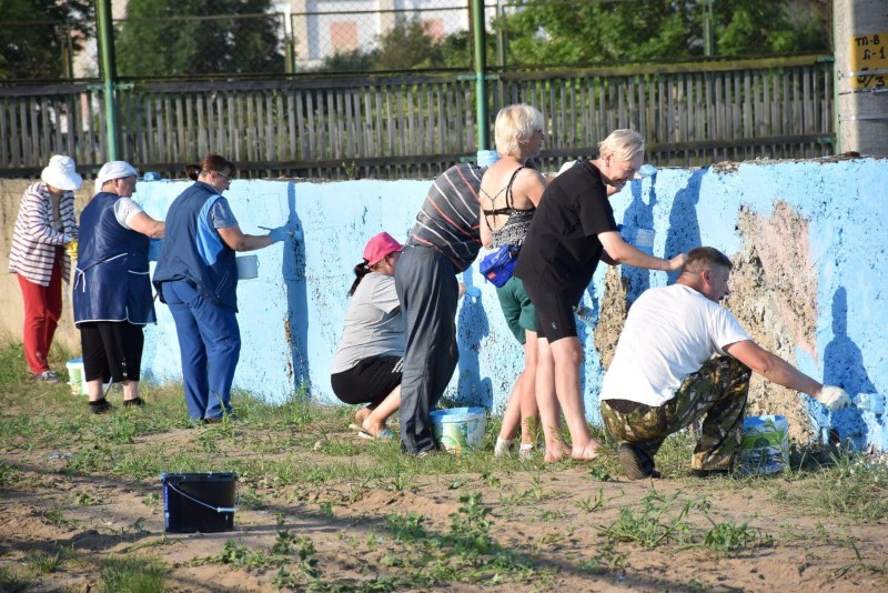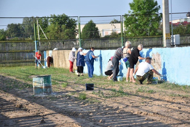 Здесь трудились представители системы образования Березинщины вместе с работниками управления по образованию, спорту и туризму. Часть из них занималась покраской ограждения, а вторая – разравниванием площадки на восточной стороне стадиона под проведение последующих там работ.