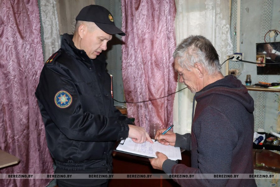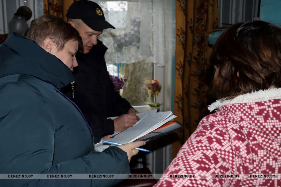 Заместитель начальника Березинского РОЧС Александр Лагун и специалист отделения первичного приёма, анализа информирования и прогнозирования Березинского ТЦСОН Елена Костевич посетили частные домовладения в Быковичах и Калиновке.