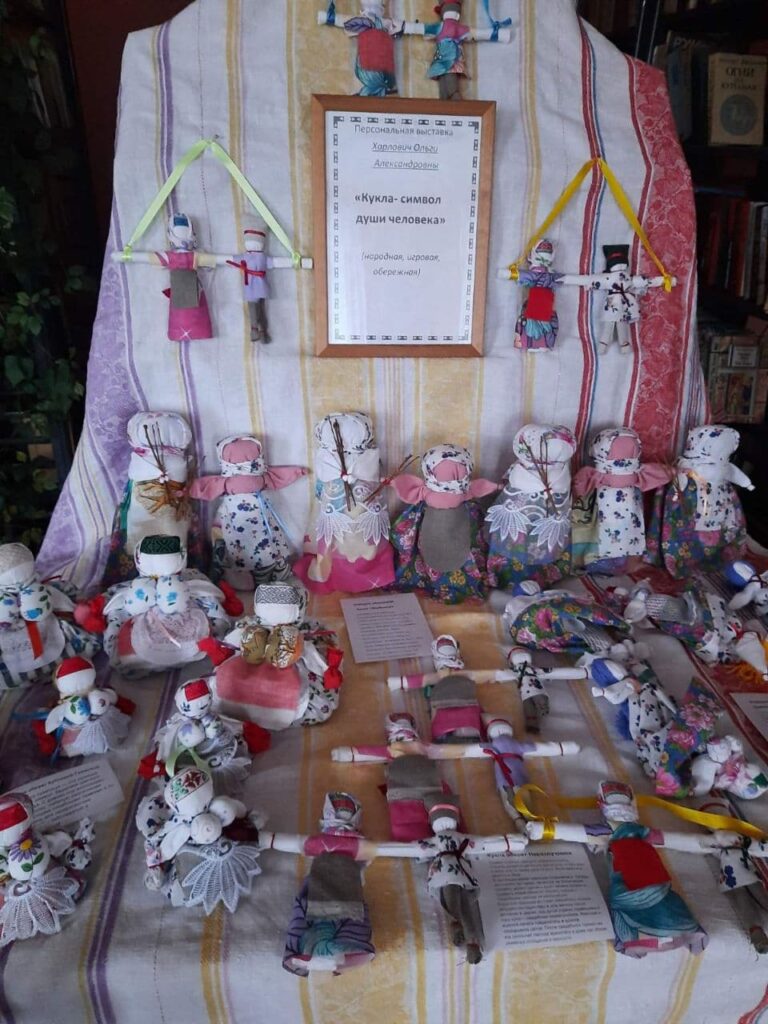 Микуличский СКБ представляет творческую выставку Харлович Ольги Александровны «Кукла- символ души человека «. На выставке можно увидеть обрядовые, обереговые, игровые куклы. Здесь представлены: кукла «Коляда», свадебные «Неразлучники», игровые «Зайчик на пальчик «, обрядовые «Вербница» и др.