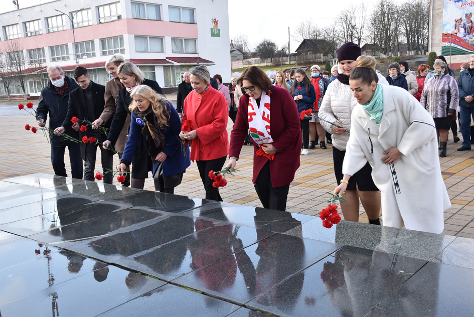 У завяршэнні ўдзельнікі мітынга да падножжа помніка У.І. Леніну ўсклалі кветкі.