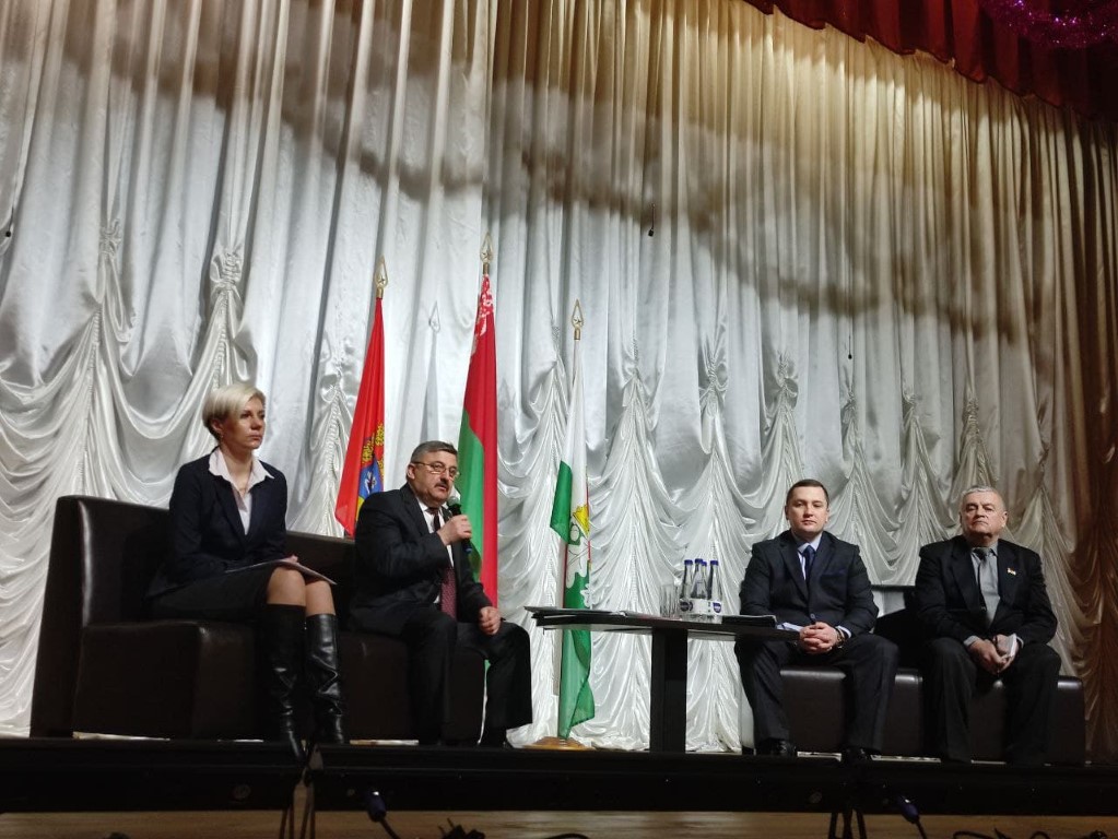 Началась встреча с просмотра небольшого видеосюжета про страшные события в Казахстане. С благодарностью за мир, спокойствие в стране обратились Елена Токан и Наталья Дубовик. Открыл встречу председатель Березинского района Денис Дишук. Он отметил, что и дальше Беларусь будет социально ориентированной страной, где главное — это человек. И сейчас очень важно каждому ознакомиться с проектом Конституции, внести свои изменения и дополнения. Ведь что бы двигаться вперёд — нужно поменять Конституции.