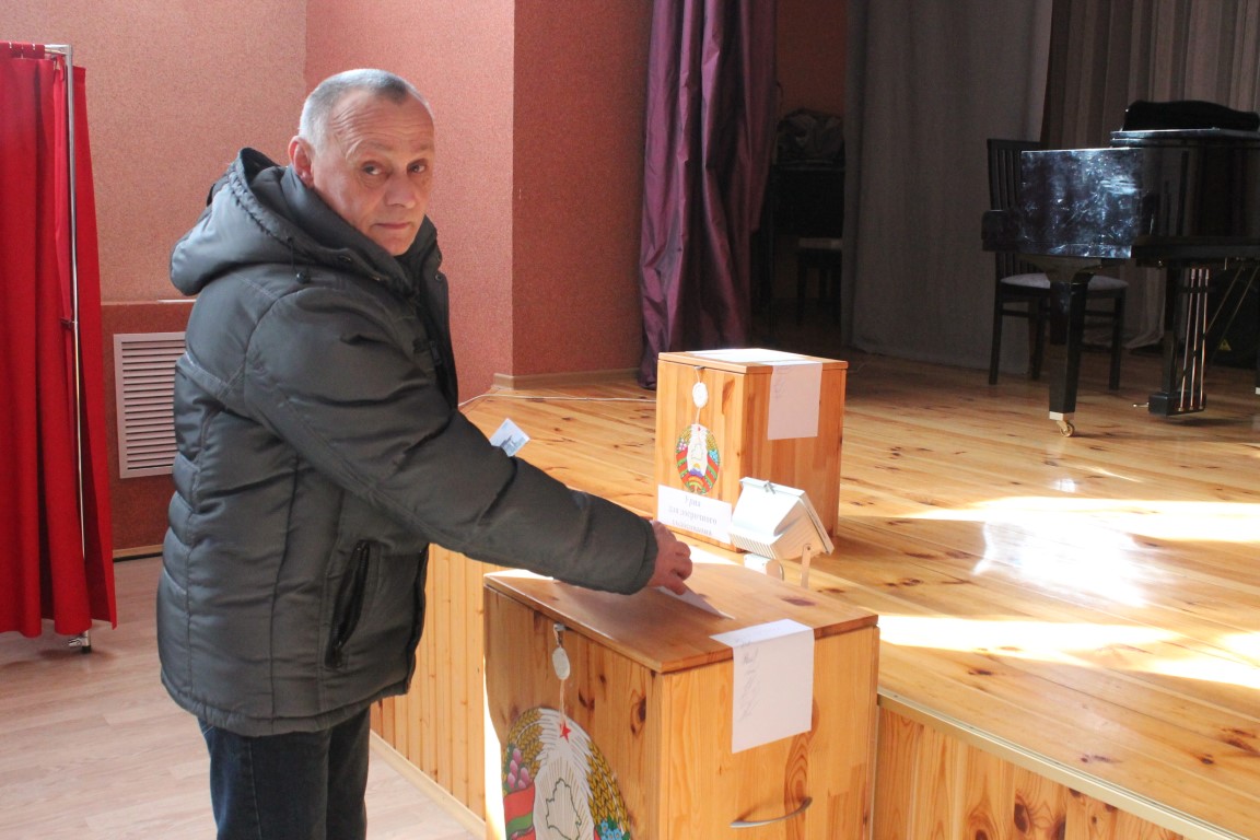 — Электаральная актыўнасць на нашым участку на даволі добрым узроўні, — расказвае старшыня ўчастковай камісіі Аляксандр Цімашэўскі. – Ужо ў аўторак, у перыяд датэрміновага галасавання, з самага адкрыцця раніцай літаральна стаялі ў чарзе 8 чалавек, каб прагаласаваць. Найбольшую актыўнасць назіраецца сярод людзей старэйшага пакалення, пенсіянераў. Сёння людзі ідуць натуральна плынню. Тэлефануюць тыя, хто не можа прыйсці. У нас гібрыдны ўчастак, дзе галасуюць людзі і сельскай мясцовасці, і з горада. Людзі дастаўляюцца транспартам. Ахвотна едуць з сельскай мясцовасці, з вёсак Святліца, Глухі Ток.