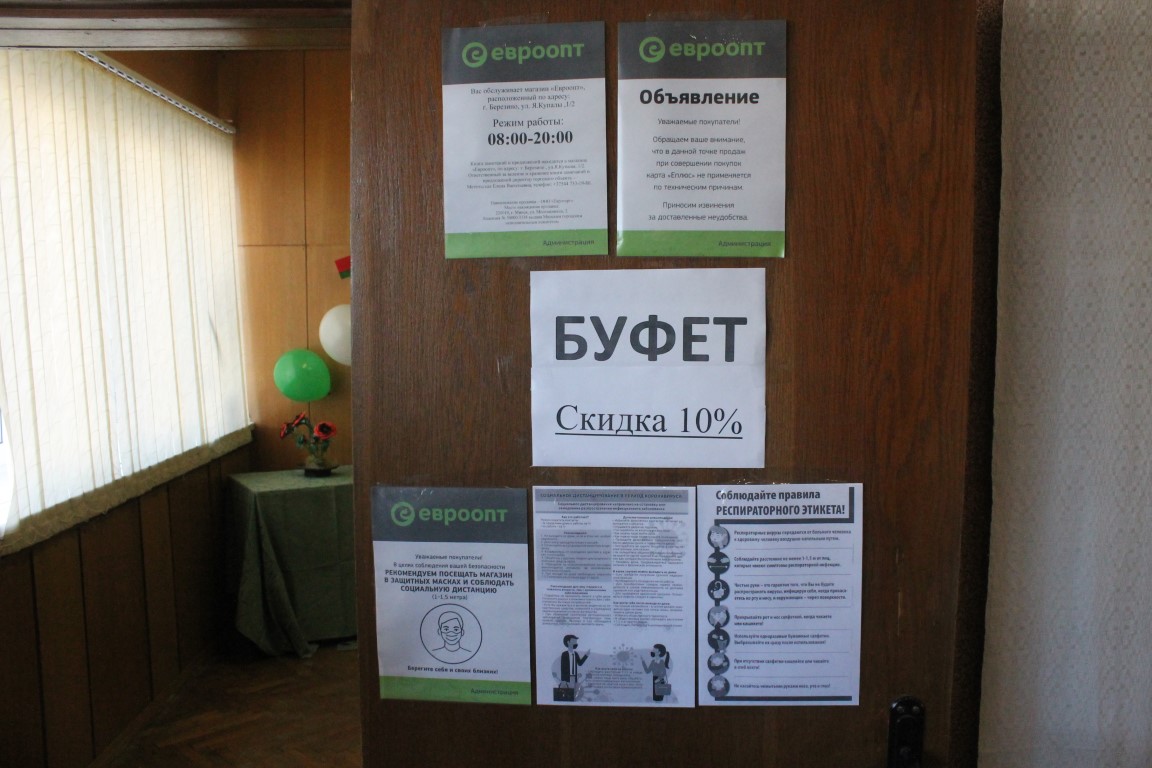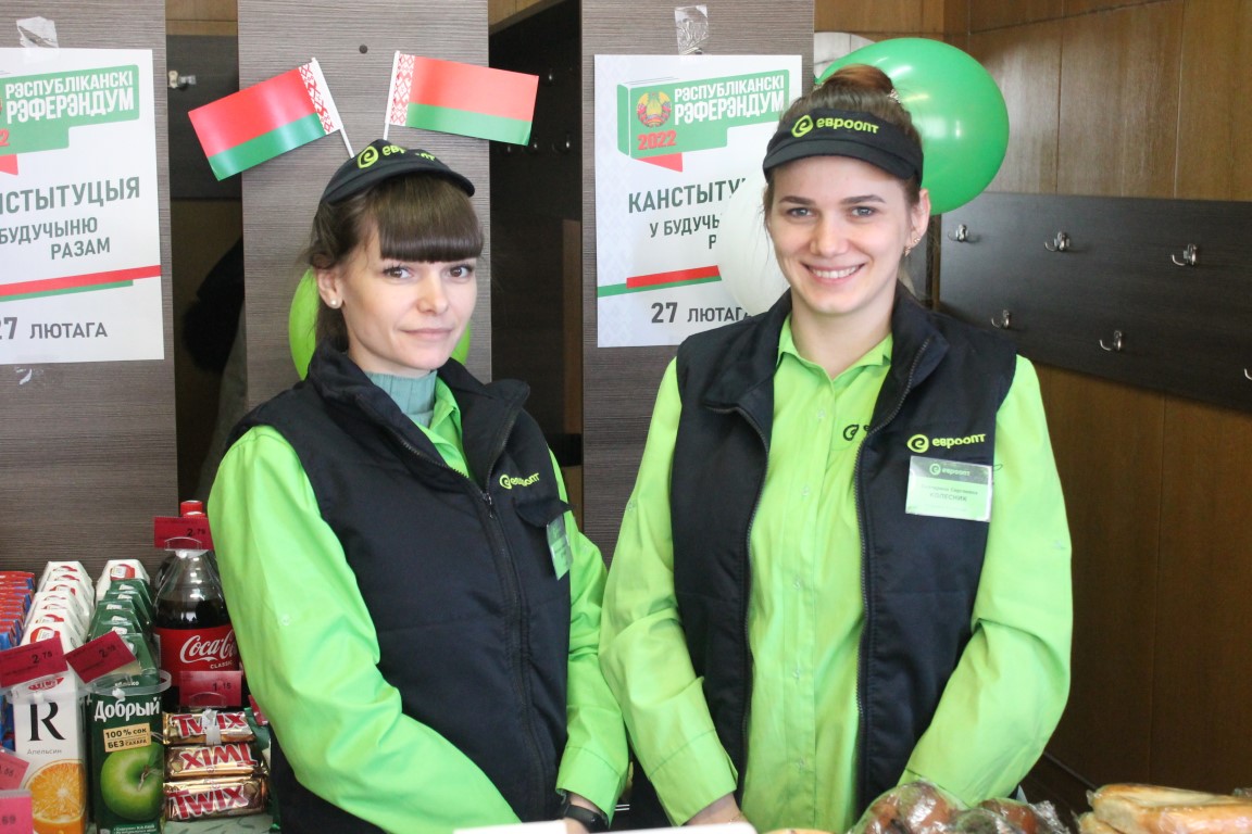 Пасля апускання бюлетэняў у ўрну для галасавання, калі ласка, можна наведацца ў буфет ад “Еўраопта”, прыгожыя маладыя дзяўчаты-прадаўцы прапануюць вам са скідкай смачныя ласункі на любы густ. Заўсёды з прыветным словам яны тлумачаць, што скідкі сёння 10 працэнтаў, і ўсё свежае, можна сказаць, толькі “з печы”.