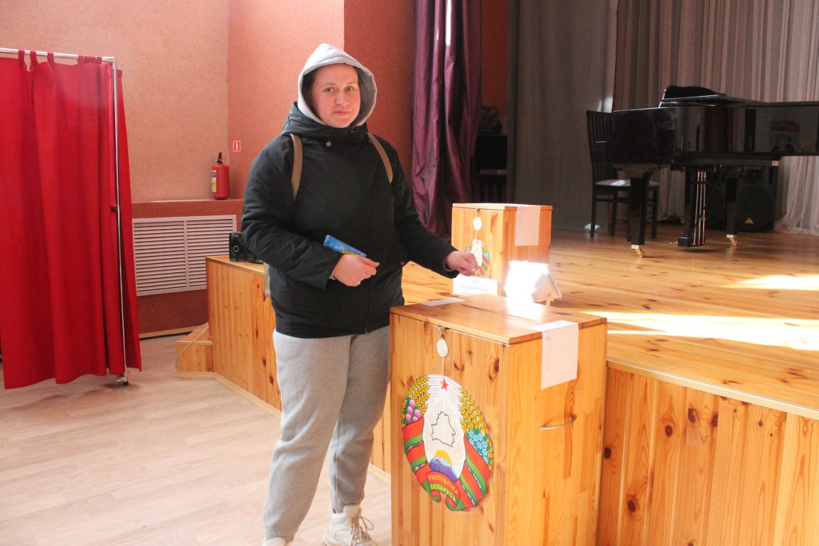 — Мы галасуем за будучыню, за нашу краіну, каб было мірнае неба над галавою, каб можна было спакойна працаваць і сталым людзям, і маладому пакаленню, каб усяго ўсім хапала, і людзі былі шчаслівыя і задаволеныя, — адначасова кажуць Алена Мікалаеўна і Вячаслаў Леанідавіч Асташонкі.