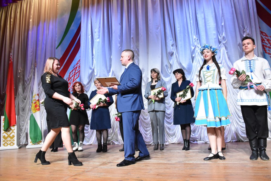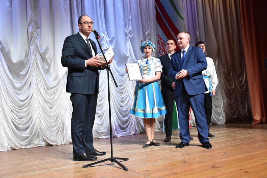 Звучали слова поздравления и гостей праздника. Миноблисполком представлял начальник главного финансового управления Николай Куховец.