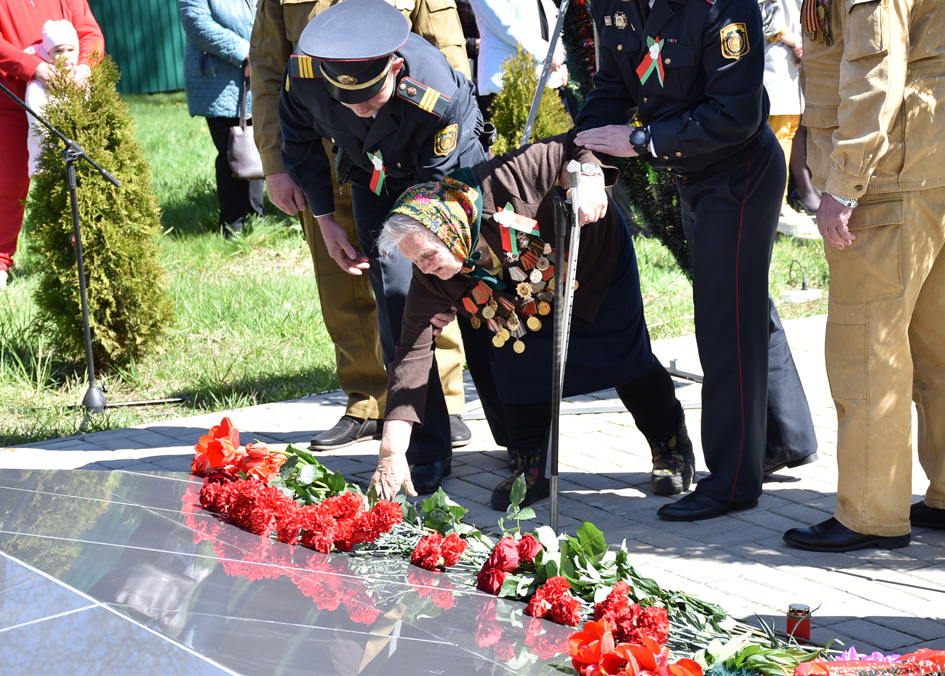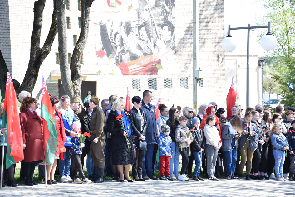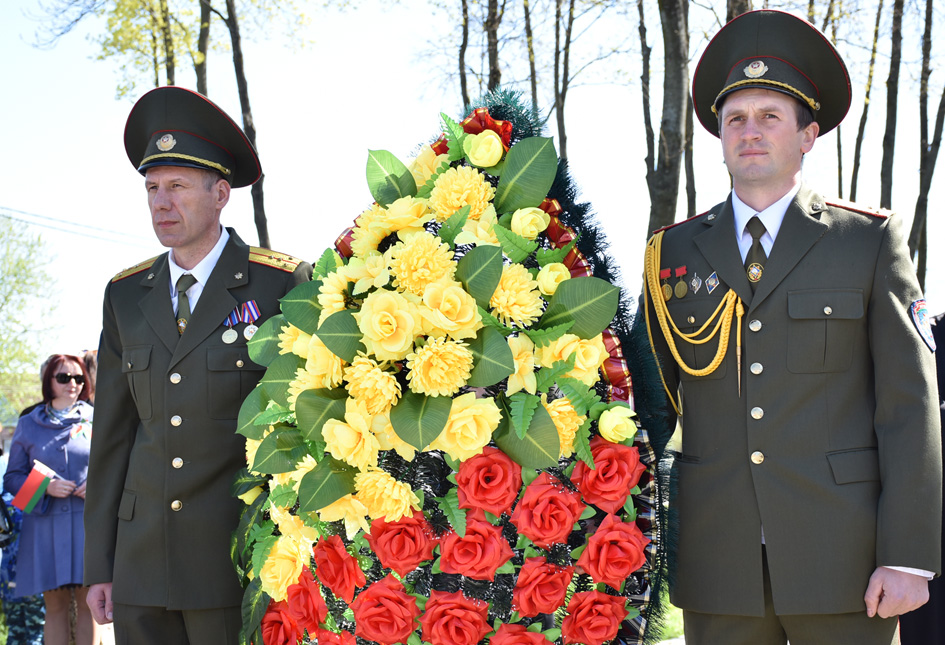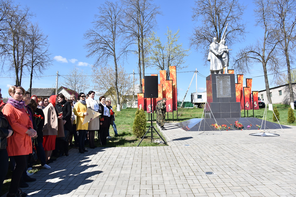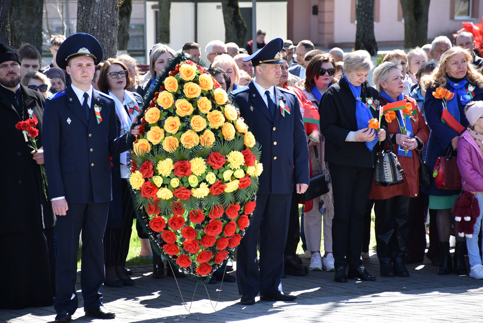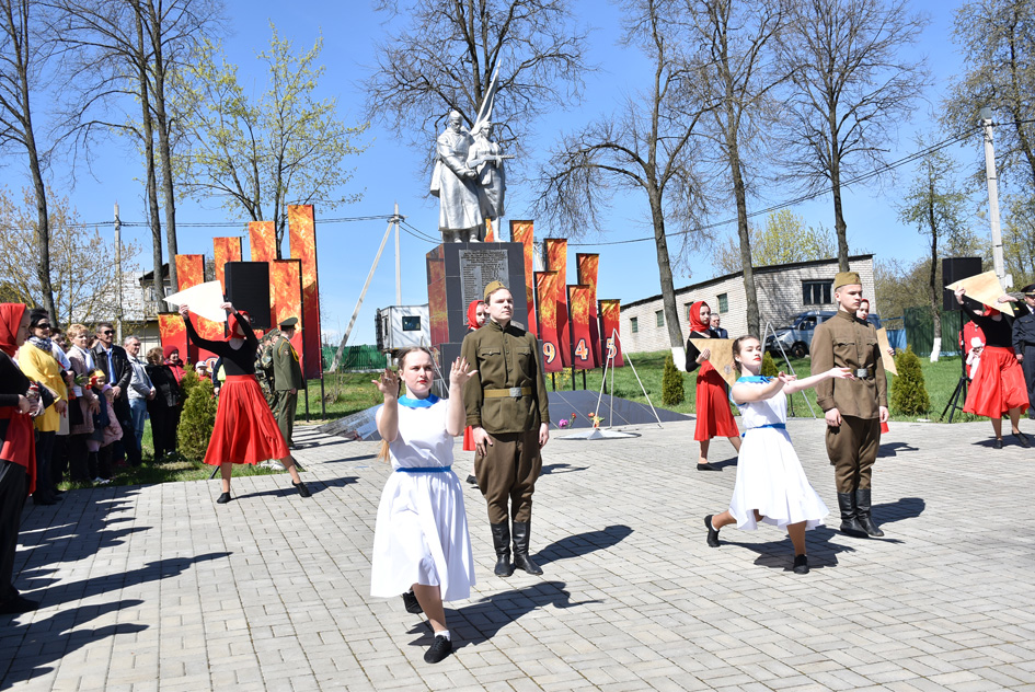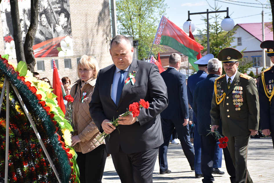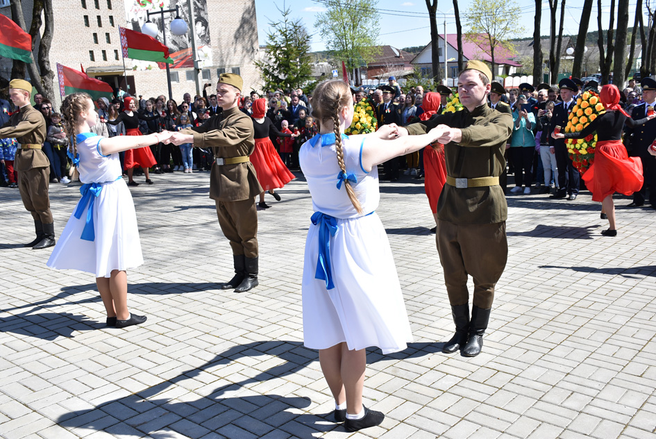 … Хвіліна маўчання. Гулкім рэхам разносіцца па наваколлі залп салюту. Да падножжа помніка загінуўшым героям ускладаюцца вянкі і жывыя кветкі ад раённага выканаўчага камітэта і раённага Савета дэпутатаў, прадпрыемстваў і арганізацый горада, грамадскіх аб’яднанняў, палітычных партый, моладзі і рэлігійных арганізацый, савета ветэранаў.