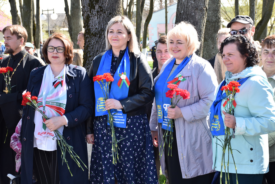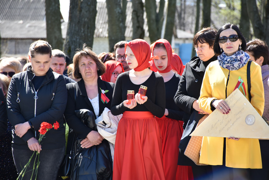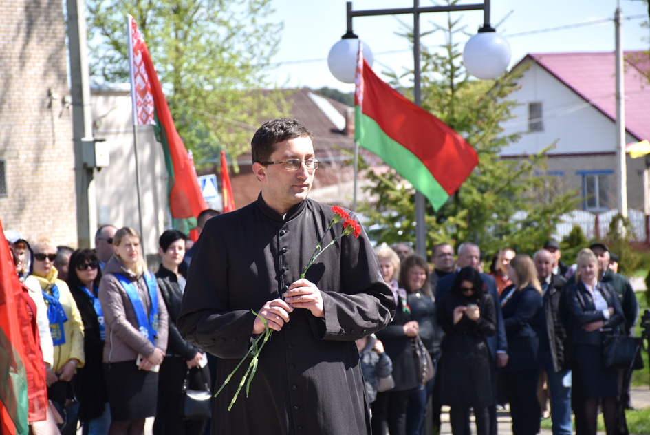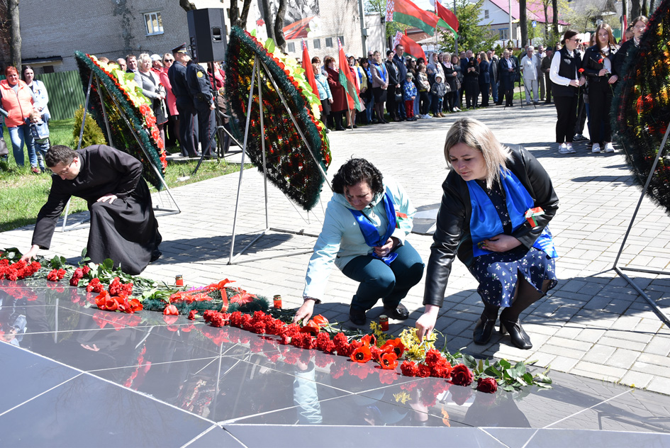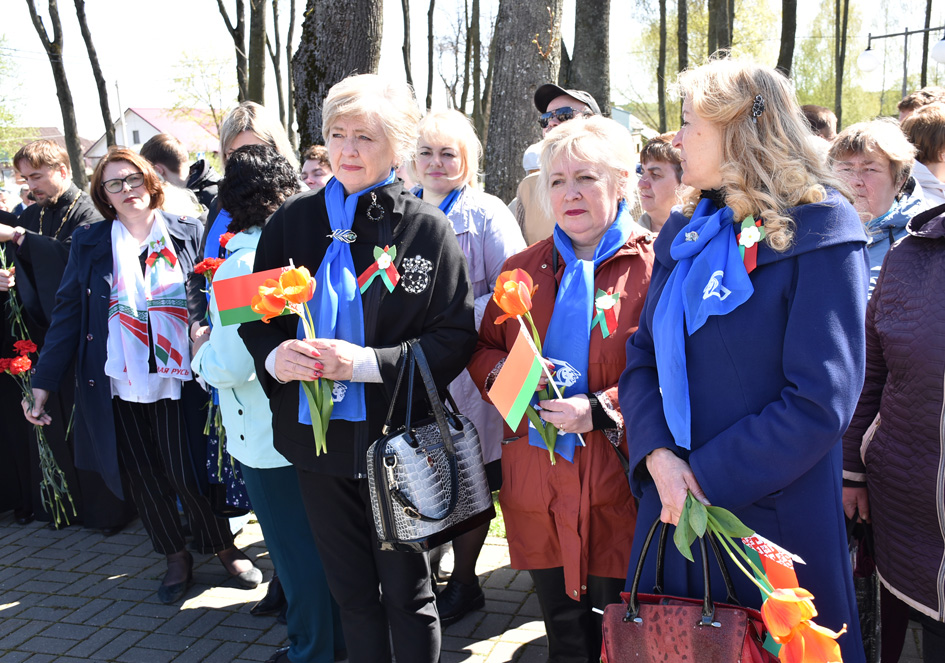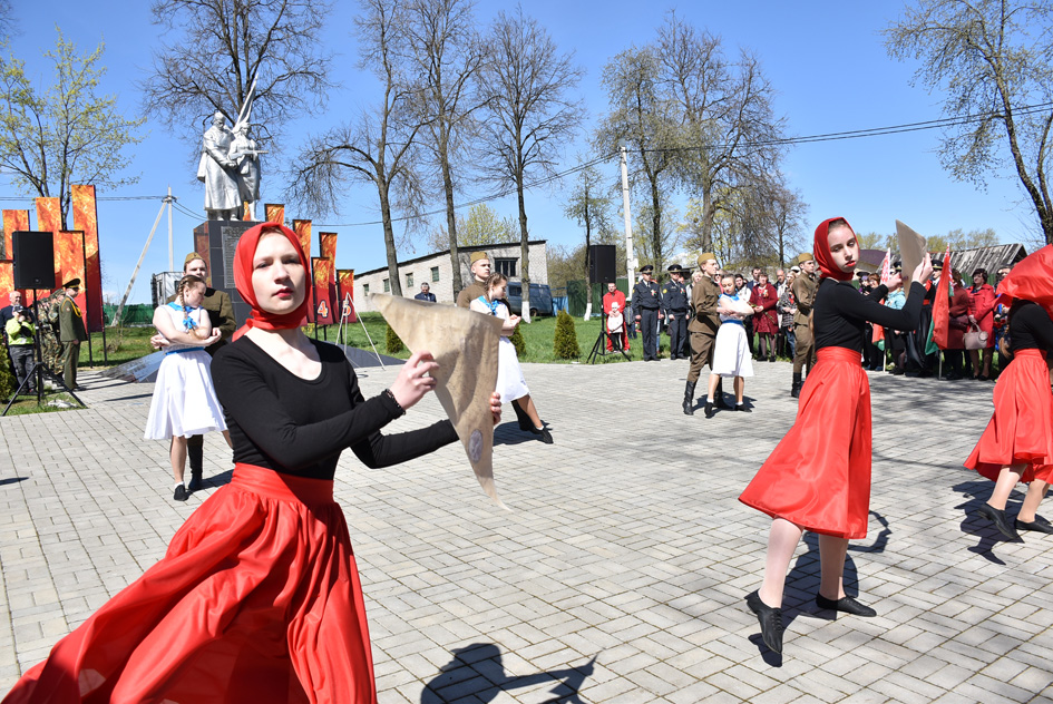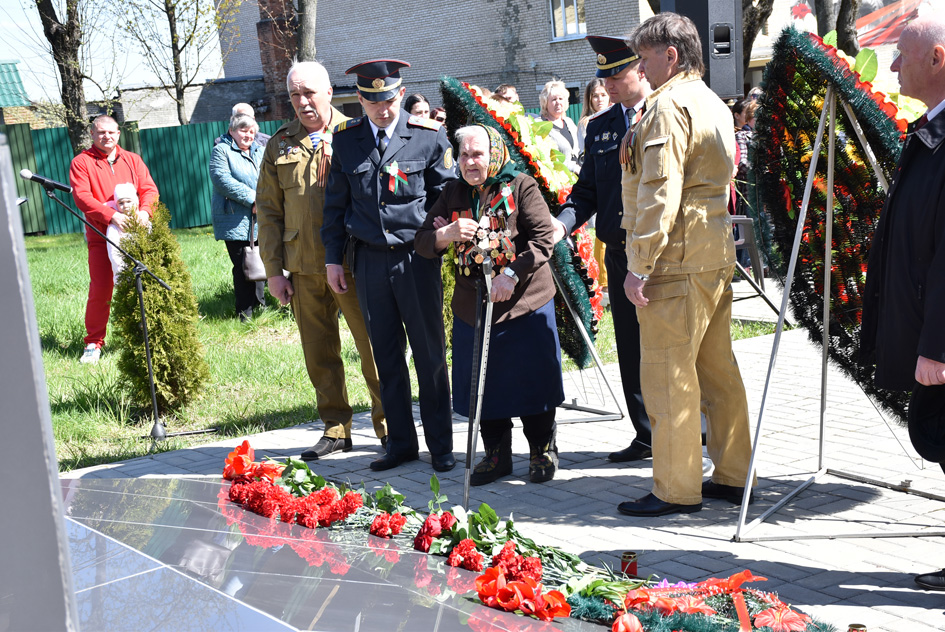 … Хвіліна маўчання. Гулкім рэхам разносіцца па наваколлі залп салюту. Да падножжа помніка загінуўшым героям ускладаюцца вянкі і жывыя кветкі ад раённага выканаўчага камітэта і раённага Савета дэпутатаў, прадпрыемстваў і арганізацый горада, грамадскіх аб’яднанняў, палітычных партый, моладзі і рэлігійных арганізацый, савета ветэранаў.