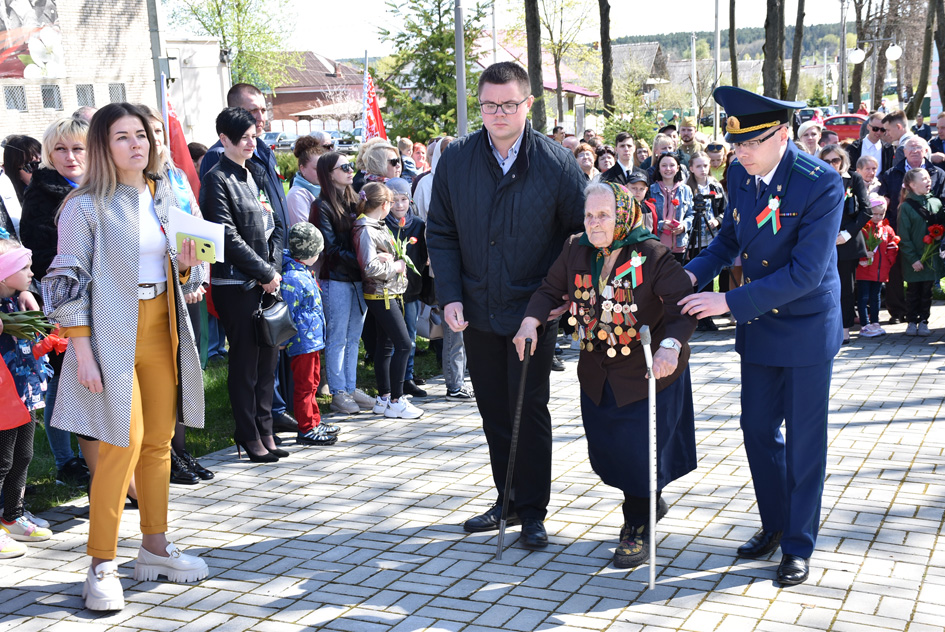- А вам, дзеткі, моладзь, жыхары раёна, жадаю шчасця, здароўя, а галоўнае – мірнага неба! – заўважыла ветэран. Каб наша родная Беларусь працвітала, квітнела, а вы ніколі не зведалі жудасцеў вайны.