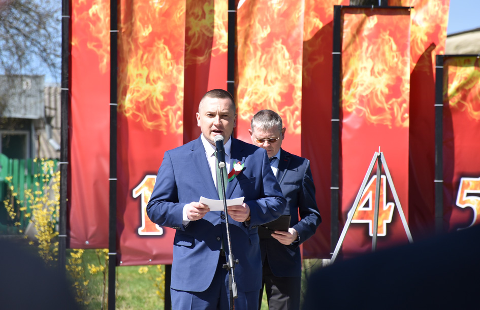 У 11.00 пачаўся мітынг. З віншавальным словам да прысутных звярнуўся старшыня Бярэзінскага раённага выканаўчага камітэта Дзяніс Дзішук: