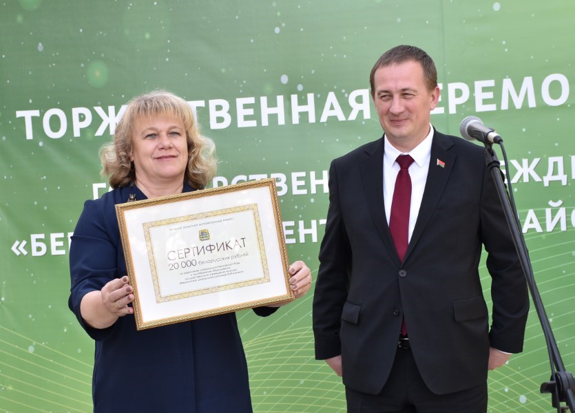 Аляксандр Генрыхавіч Турчын уручыў сертыфікат дырэктару Бярэзінскай цэнтральнай раённай бібліятэкі Наталлі Маеўскай.