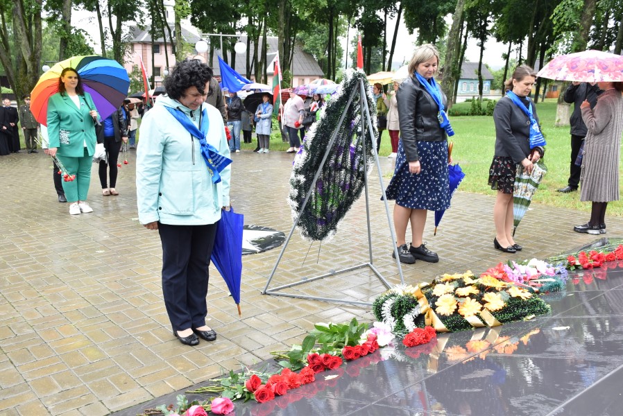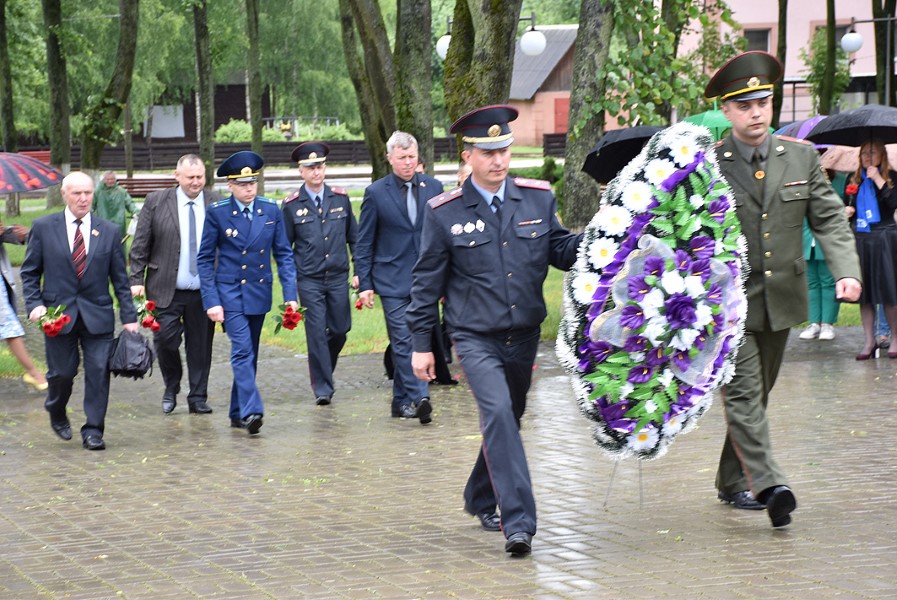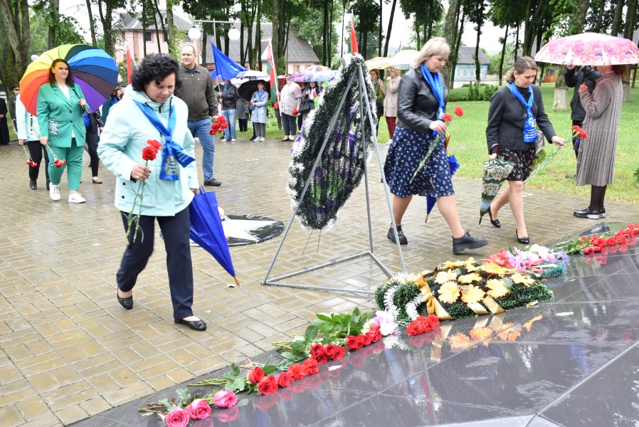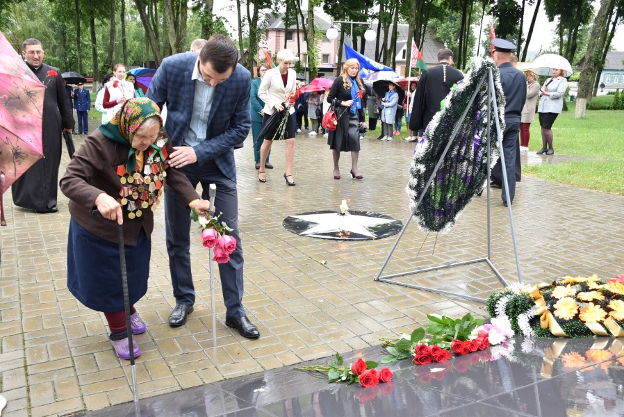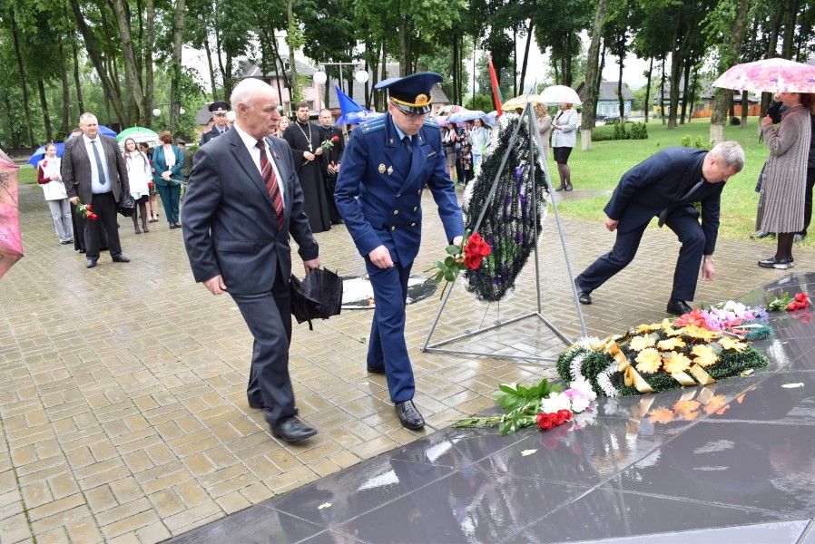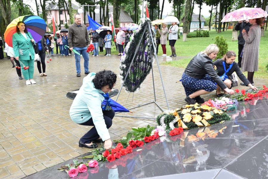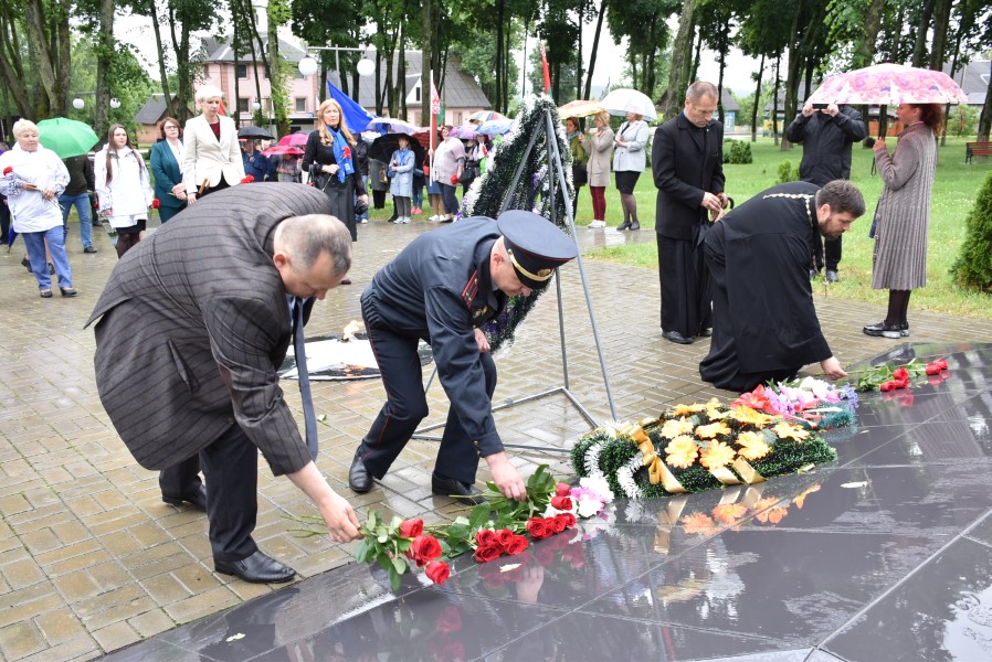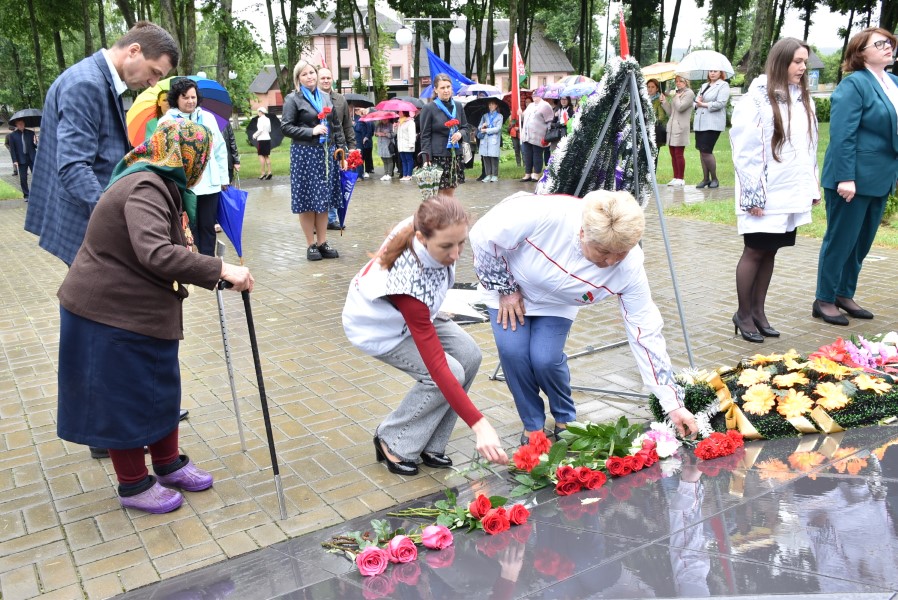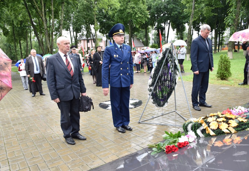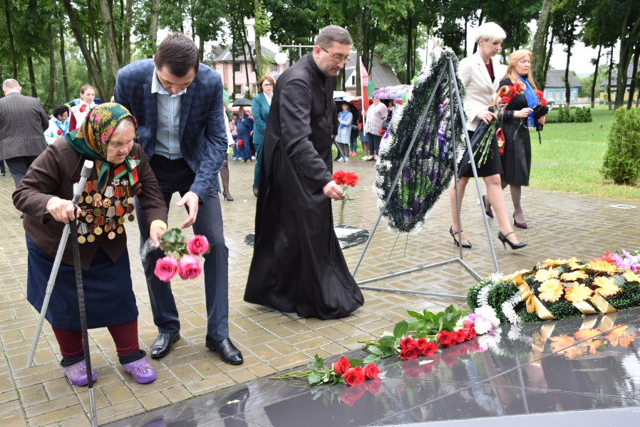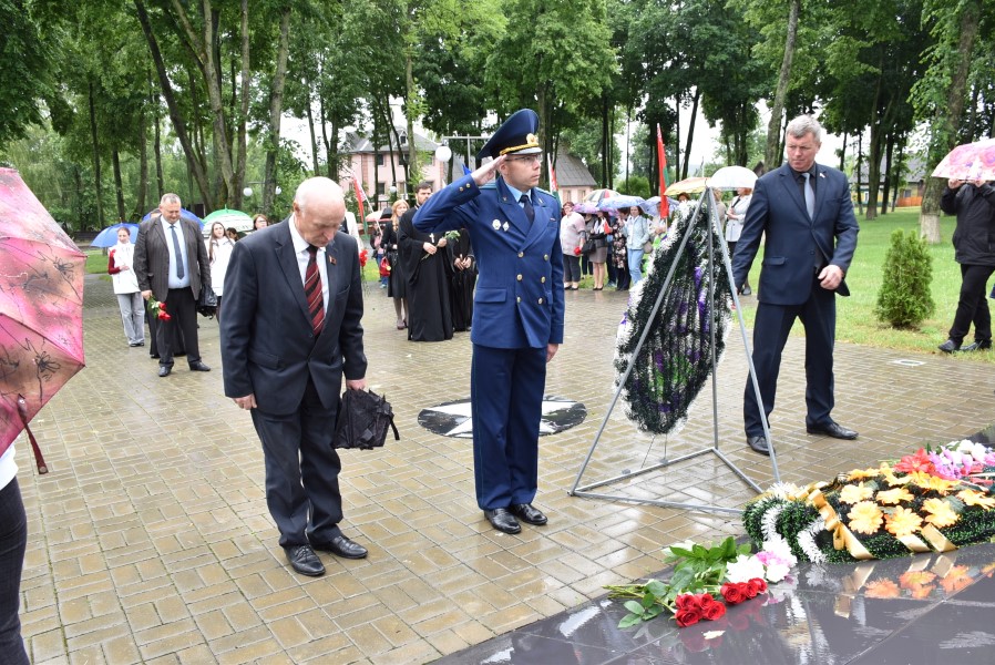 Прадстаўнікі Бярэзінскага райвыканкама, прафсаюзных і ветэранскіх арганізацый, працоўных калектываў, рэлігійных абшчын і БРСМ усклалі кветкі да помніка.