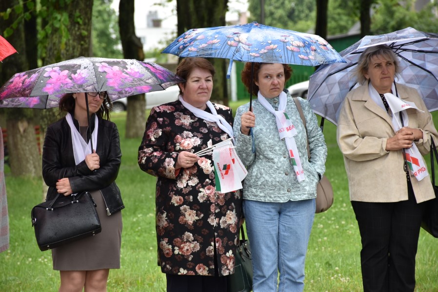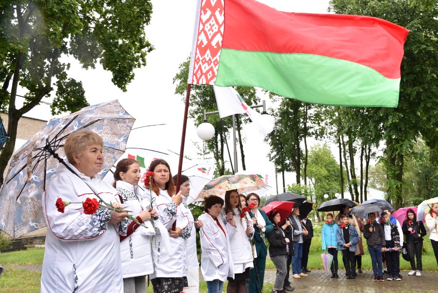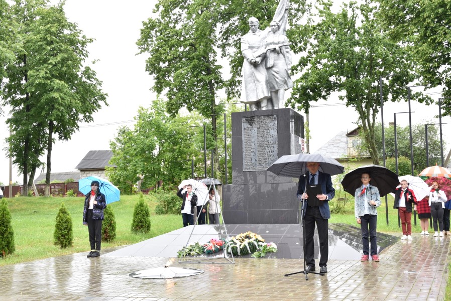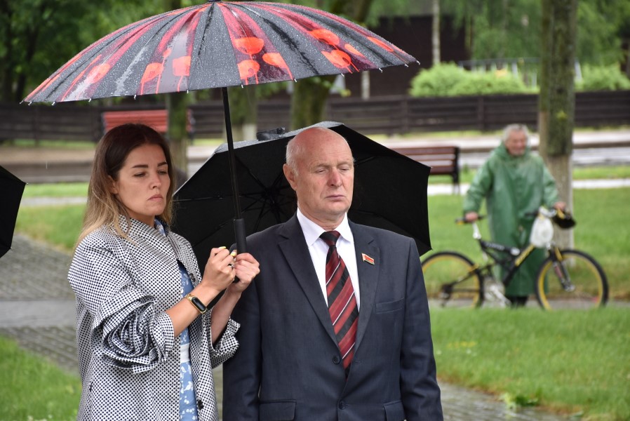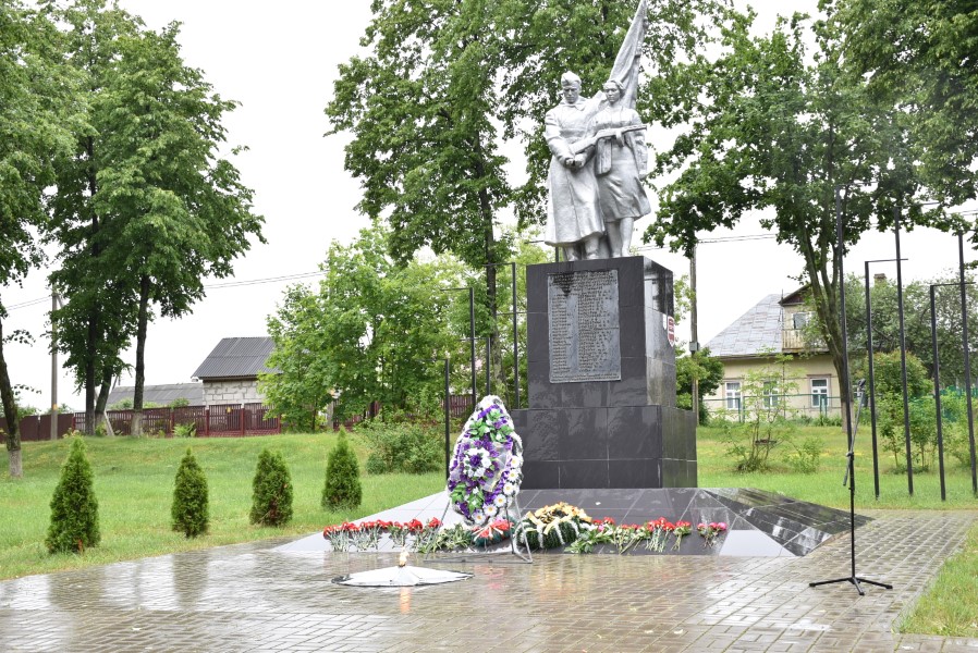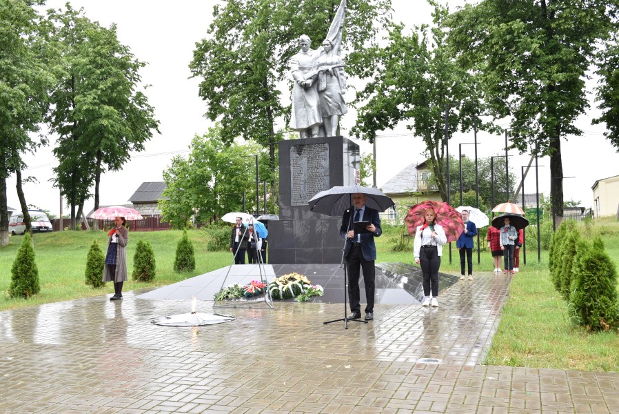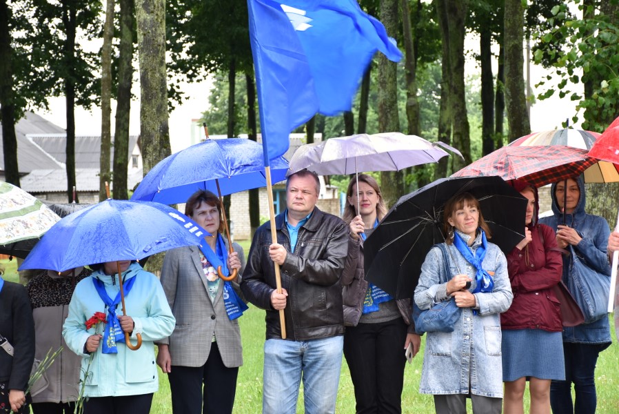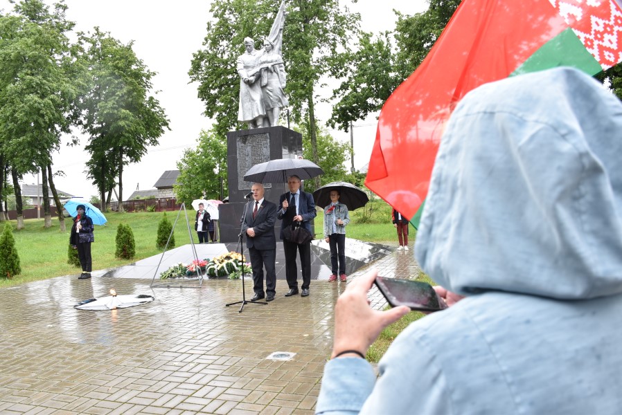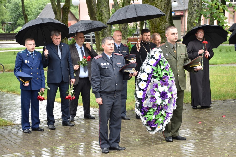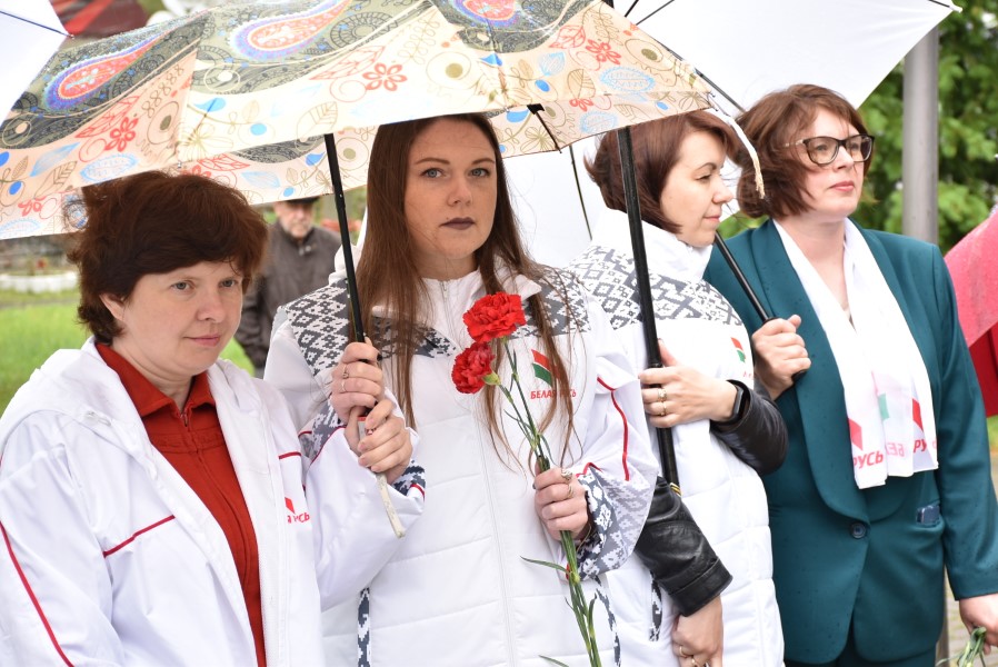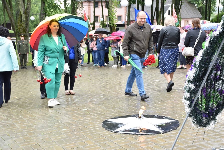 Прадстаўнікі Бярэзінскага райвыканкама, прафсаюзных і ветэранскіх арганізацый, працоўных калектываў, рэлігійных абшчын і БРСМ усклалі кветкі да помніка.