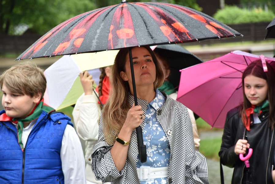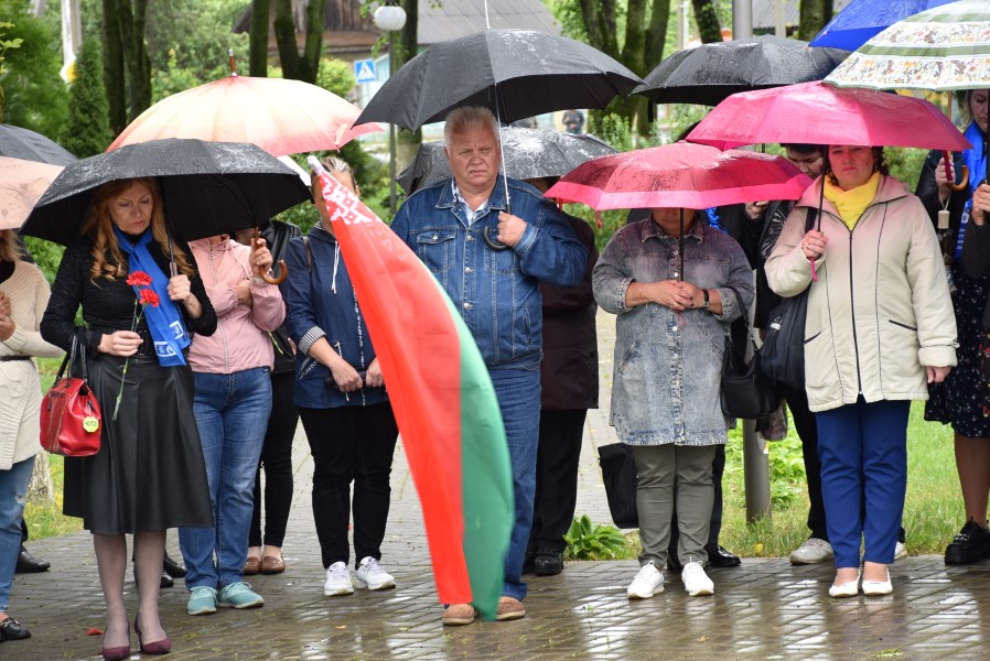 Удзельнікі мітынга далучыліся да Усебеларускай хвіліны маўчання ў памяць тых, хто цаной свайго жыцця выканаў абавязак па абароне Радзімы, хто загінуў у тыле, хто быў закатаваны ў фашысцкай няволі.