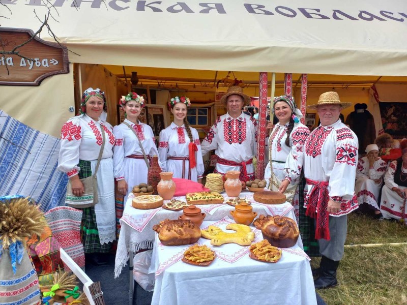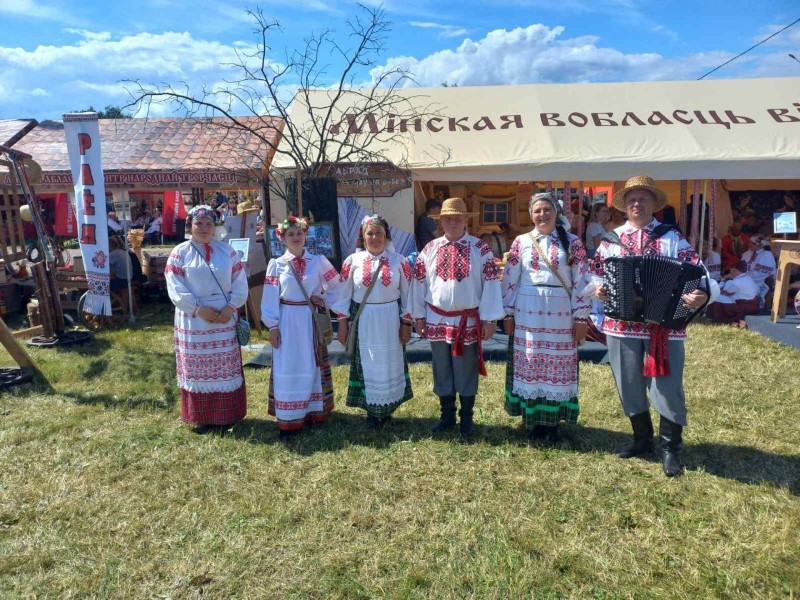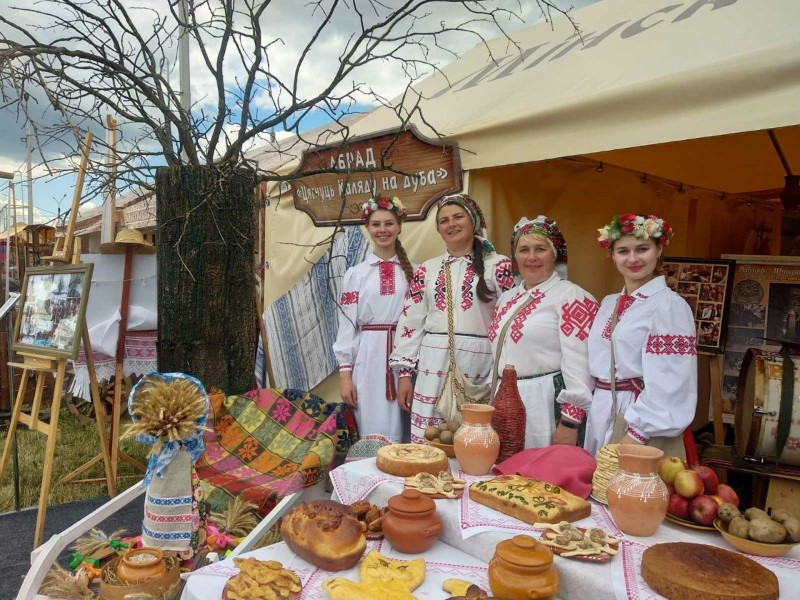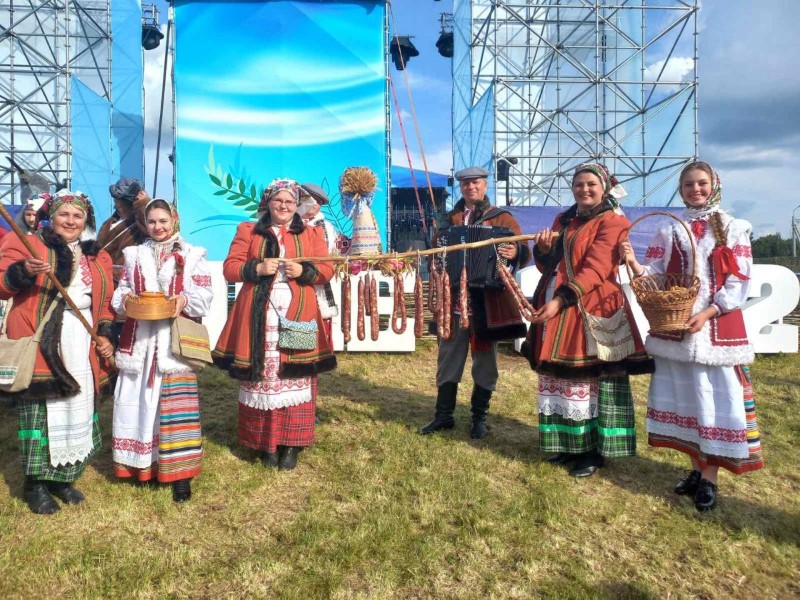 Удзельнікі Новінскага СДК, захавальнікі і пераемнікі традыцыйнага абрада "Цягнуць Каляду на дуба", на Рэспубліканскім свяце "Купалле“ (“Александрыя збірае сяброў“) - 2022.