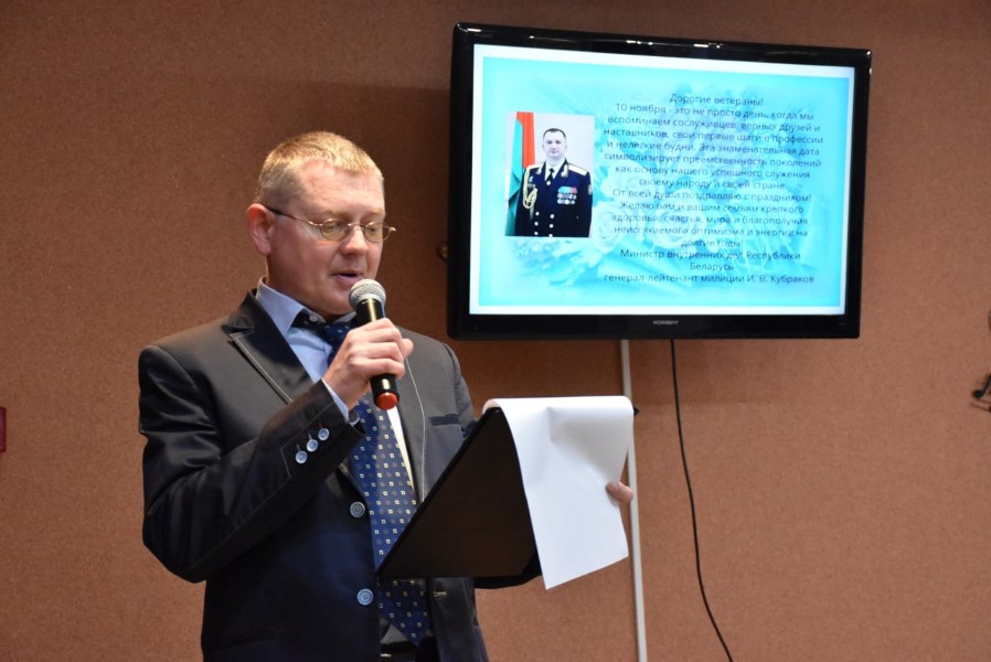 По традиции первым слова поздравления сказал присутствующим ветеранам начальник Березинского РОВД подполковник милиции Андрей Заяц. Он вручил награды группе сотрудников милиции в запасе.