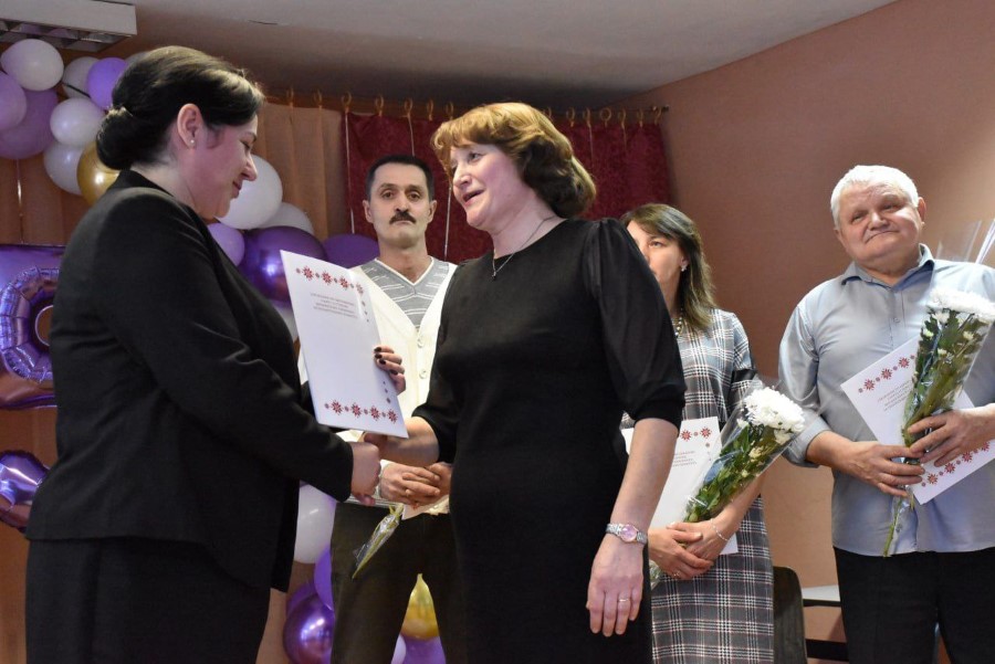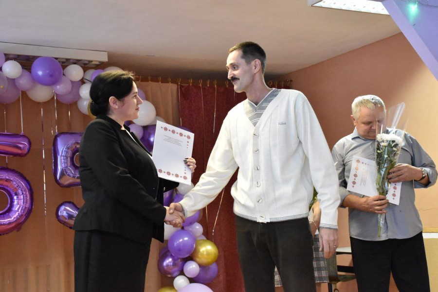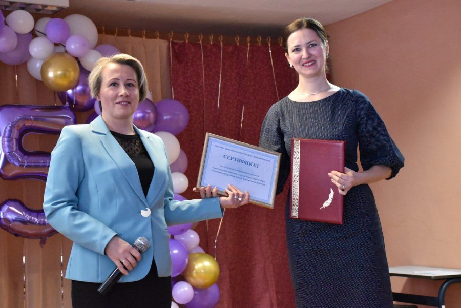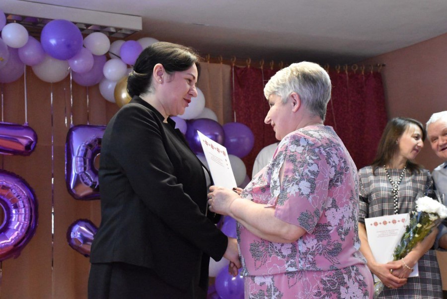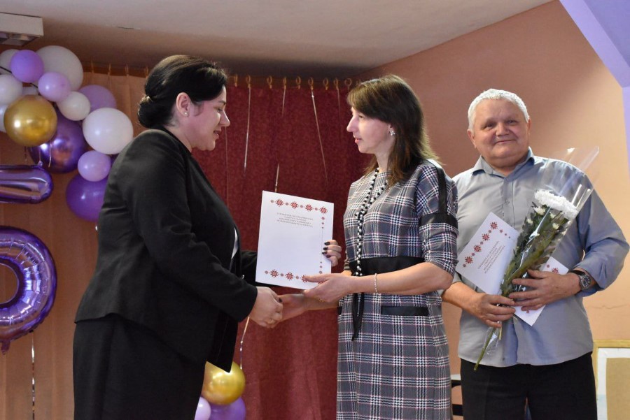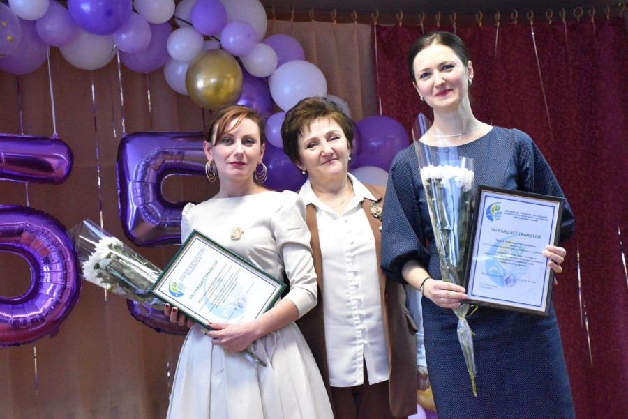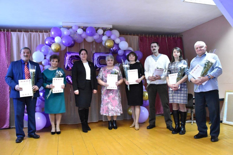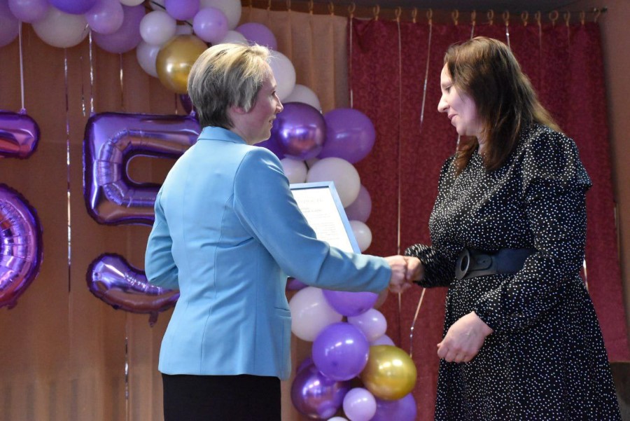 Гости пришли на мероприятие не с пустыми руками. Награды по случаю юбилея педагогам и работникам школы вручали заместитель председателя райисполкома Ольга Колячко, начальник управления по образованию, спорту и туризму райисполкома Алеся Титова н председатель райкома профсоюза работников образования Людмила Толкач.