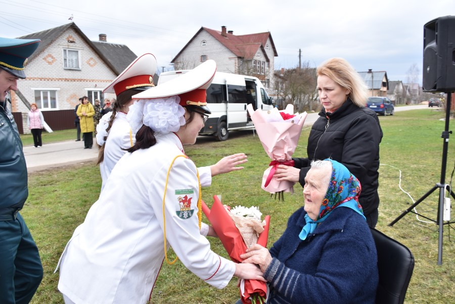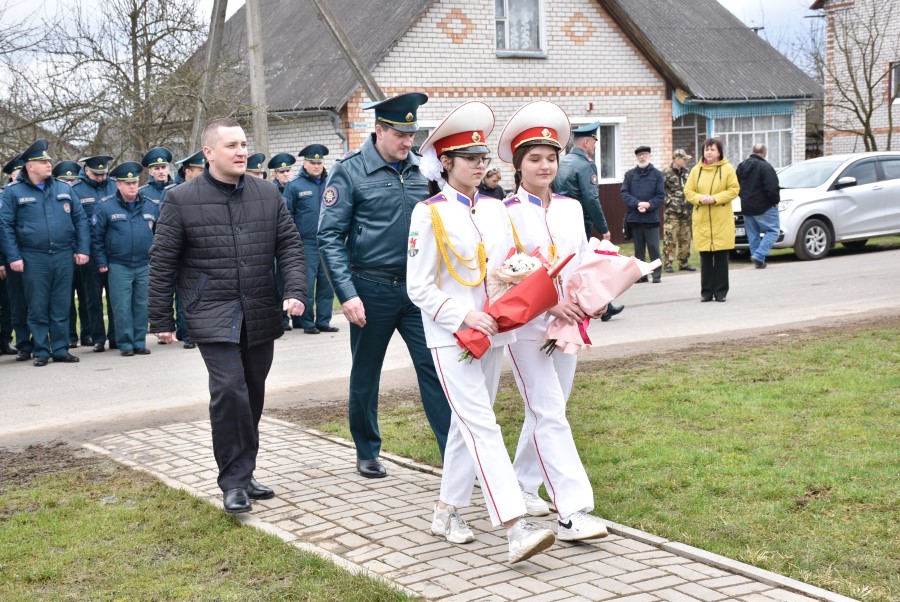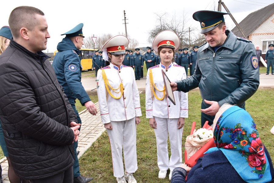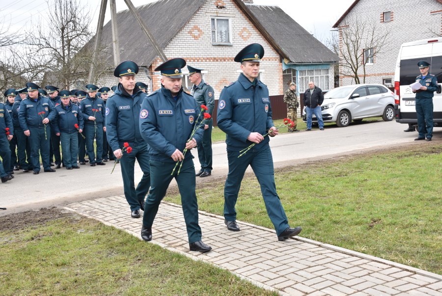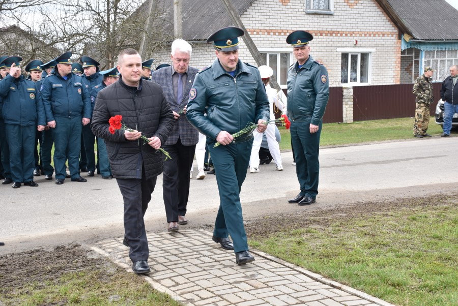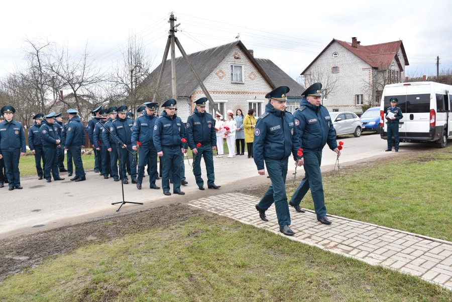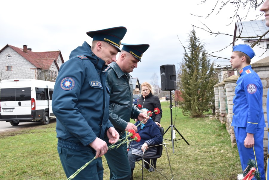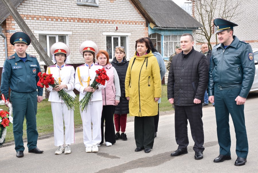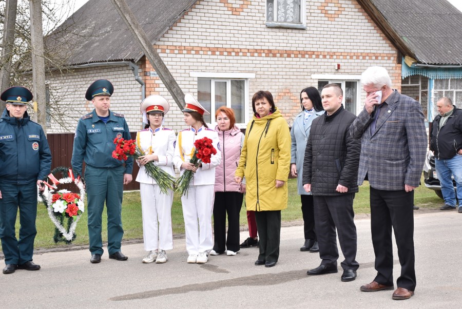 Да мемарыяльнай дошкі былі ўскладзены кветкі. Вялікі букет чырвоных гваздзікоў ад імя раённага выканаўчага камітэта і абласнога ўпраўлення па надзвычайных сітуацыях быў уручаны і Таццяне Пятроўне. Дадаткам да яго стаў сертыфікат на набыццё кухоннага камбайна.