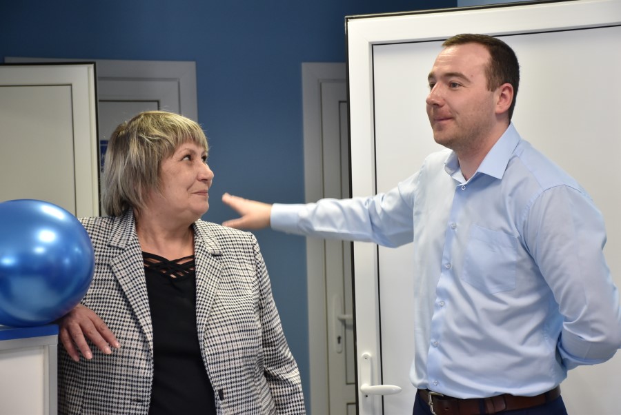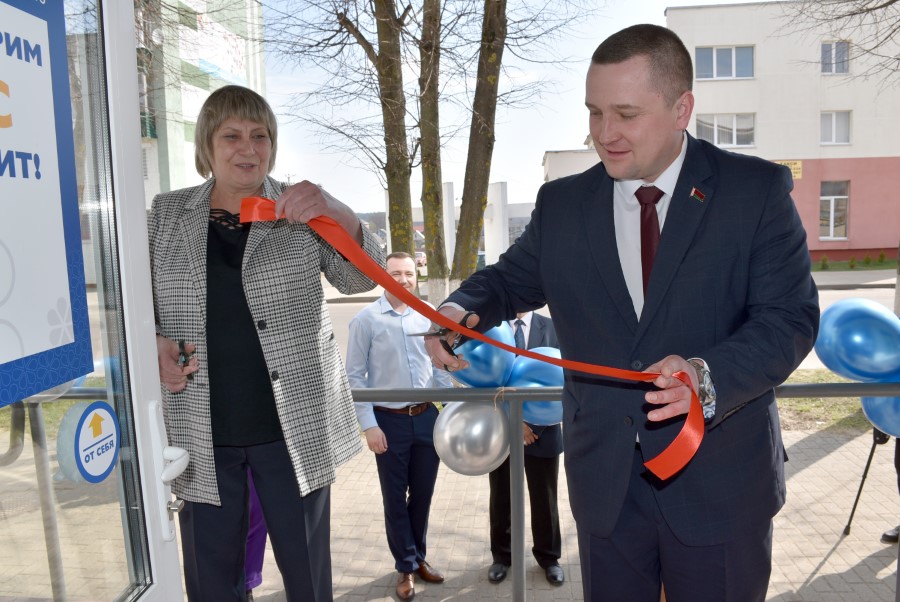 Красную ленточку порезали председатель Березинского райисполкома Денис Дишук и директор медцентра Тамара Чеховская.