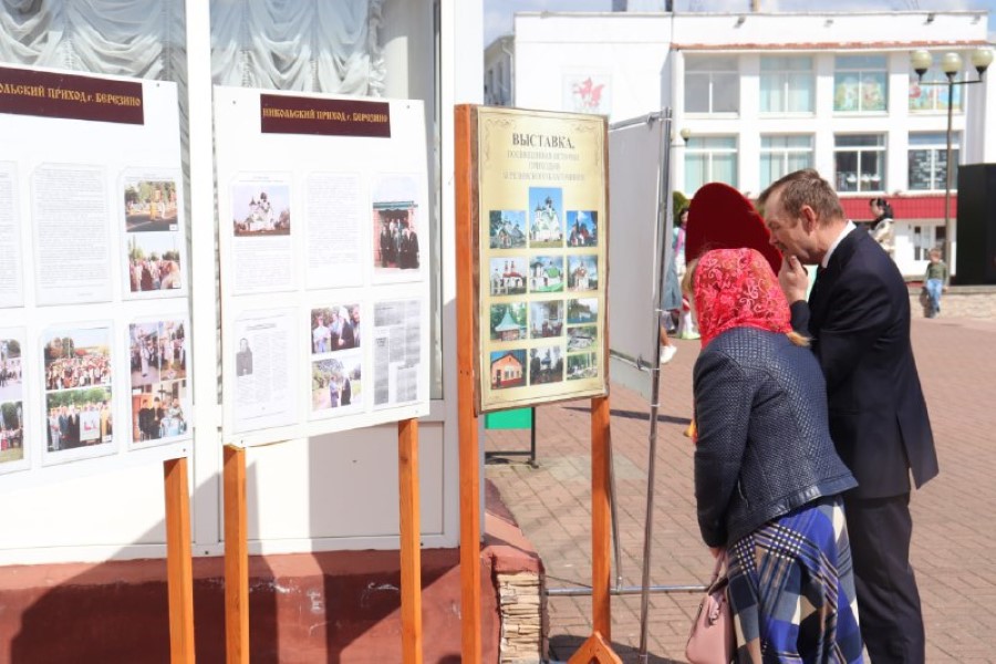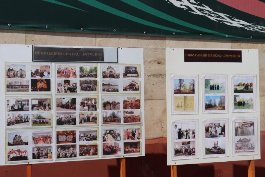 Здесь расположились выставка истории приходов Березинского благочиния, выставка декоративно-прикладного искусства и фотозоны.