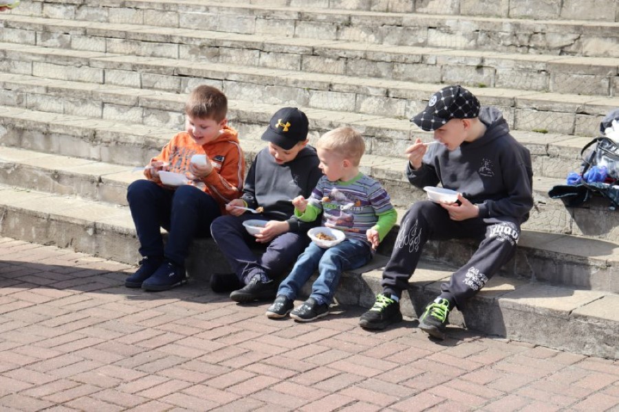 К слову говоря, прихожане и гости праздника прямо на месте могли отведать отличной каши и горячего чая. Свежий воздух способствовал хорошему аппетиту, а общая атмосфера праздника укрепляла собравшихся в вере и рождала благостные настроения. Особенно веселились детишки, для которых были предусмотрены различные занятия: от художественной росписи сувениров до возможности позвонить в колокола.