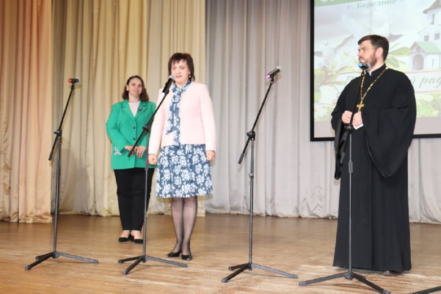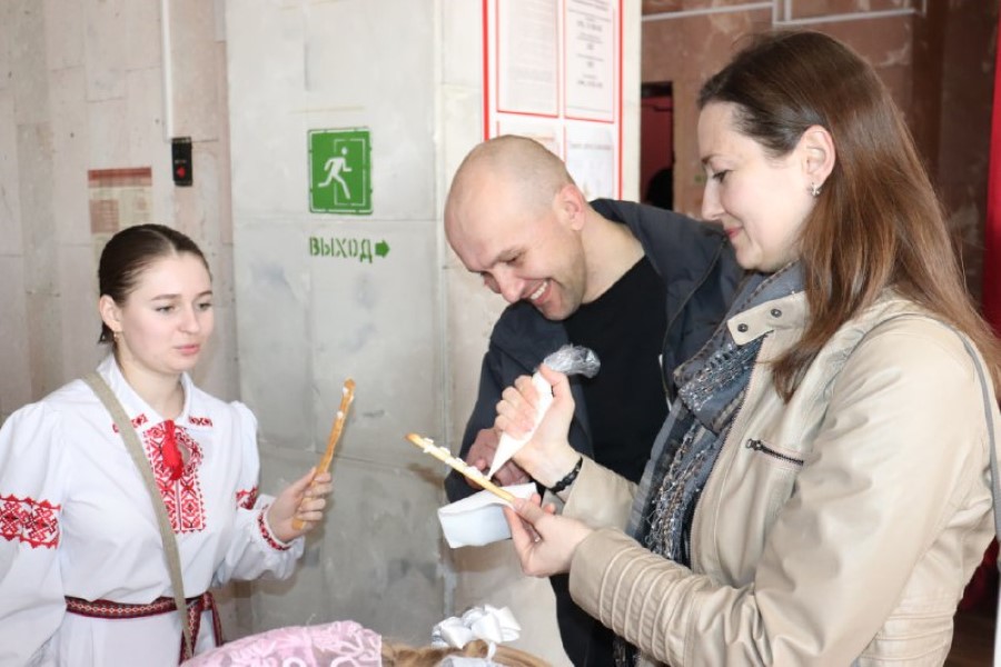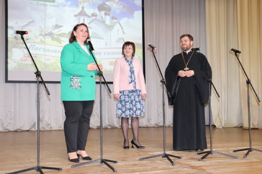 В официальной части праздничной церемонии на сцене РЦК с приветственным и благодарственным словом выступили начальник отдела по идеологической работе, культуре и по делам молодежи райисполкома Татьяна Лученок, директор районного центра культуры Мария Буримская. «Давайте вместе творить добро! Христос воскрес!», – сказала в конце выступления Татьяна Михайловна.