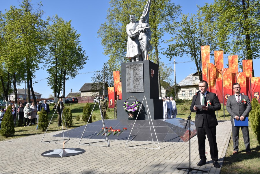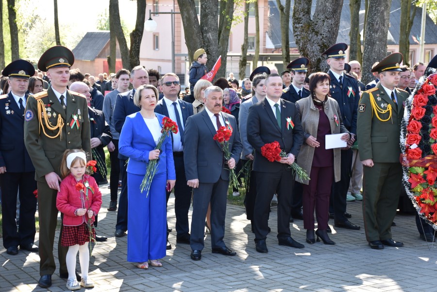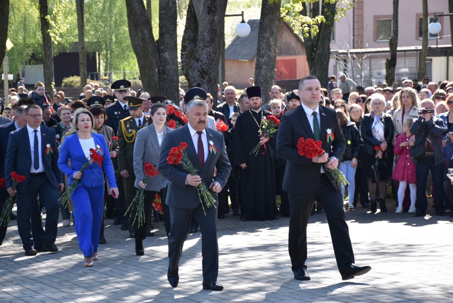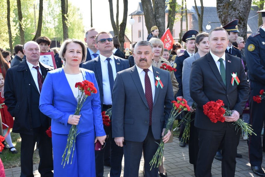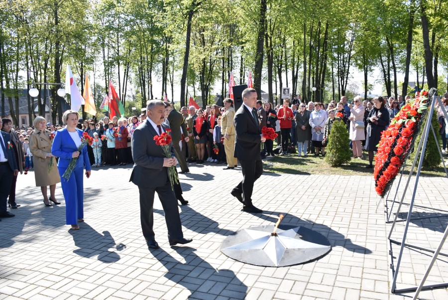 – Дорогие березинцы, гости нашего района, уважаемые участники Великой Отечественной войны! Праздник 9 Мая соединил в себе радость и скорбь, гордость за нашу славную историю и печаль о многочисленных жертвах войны. В далеком 1945-м году этот день ликовал от радости. Воздух был насыщен переполнявшим всех чувством того, что больше уже нет войны. Все это благодаря нашим дедам и прадедам. Пройдя через боль утрат, кровь и страдания, они проявили несгибаемую волю, выстояли и победили.