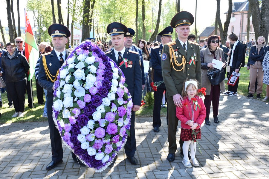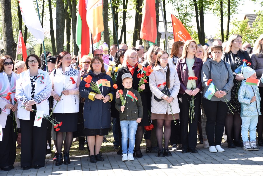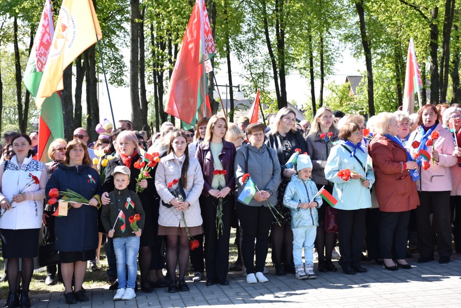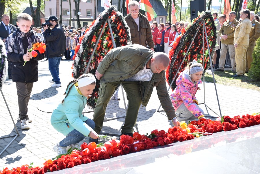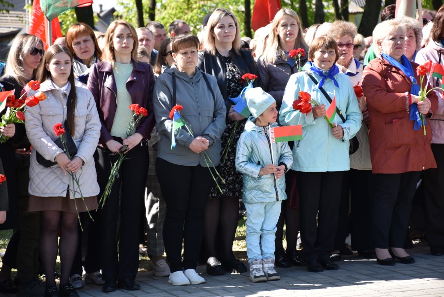 Как всегда, огромное число жителей Березино собрал сегодня светлый День Великой Победы в святом для них месте – у подножия павшим землякам и воинам-освободителям, что расположен в городском сквере. Тут переплелись все поколения березинцев – от убеленных годами стариков до школьников и той ребятни, которая еще не научилась ходить и пока передвигается только в колясках. Для всех нас День Победы – главный и любимый всеми праздник.