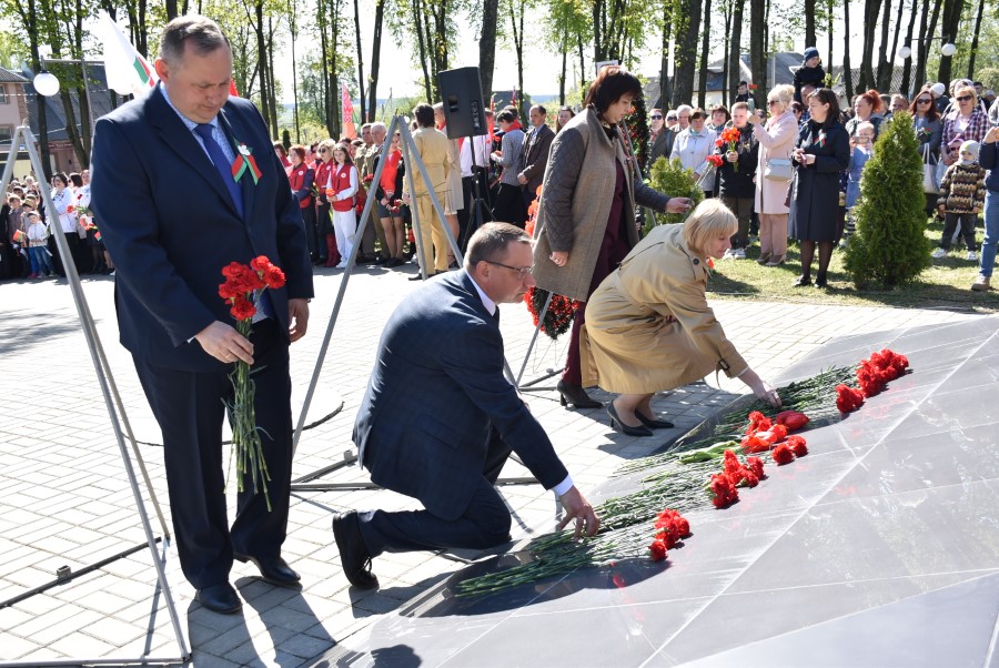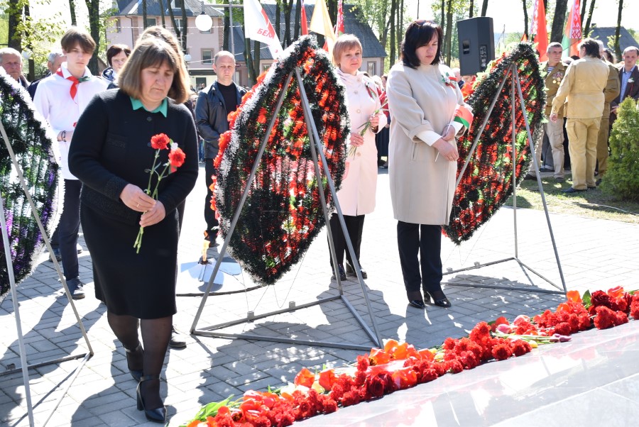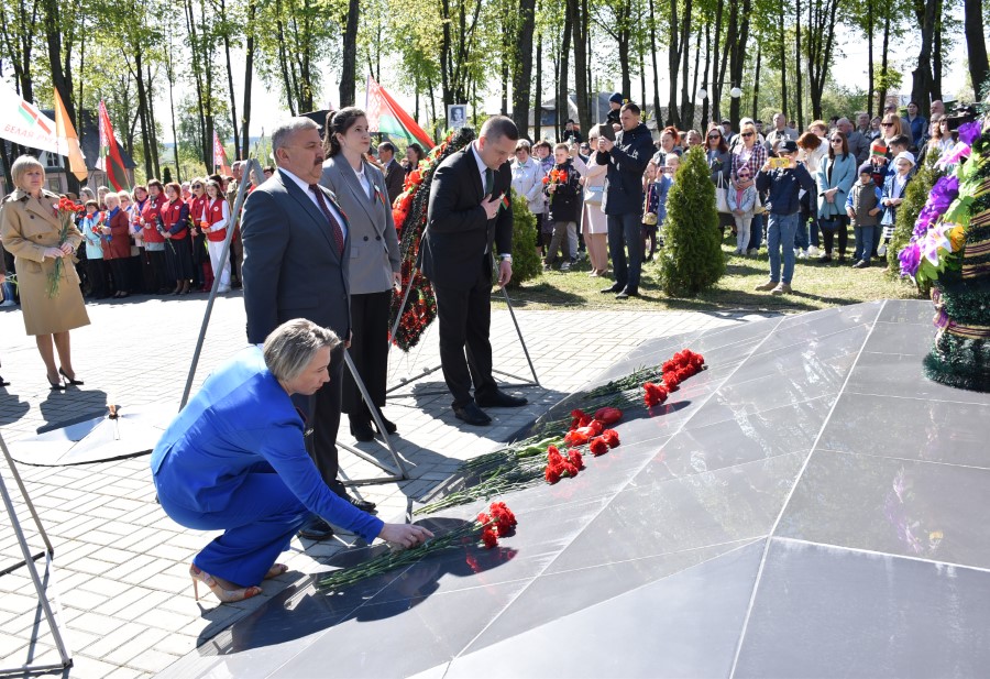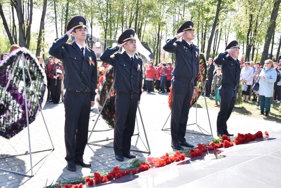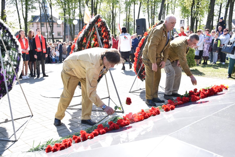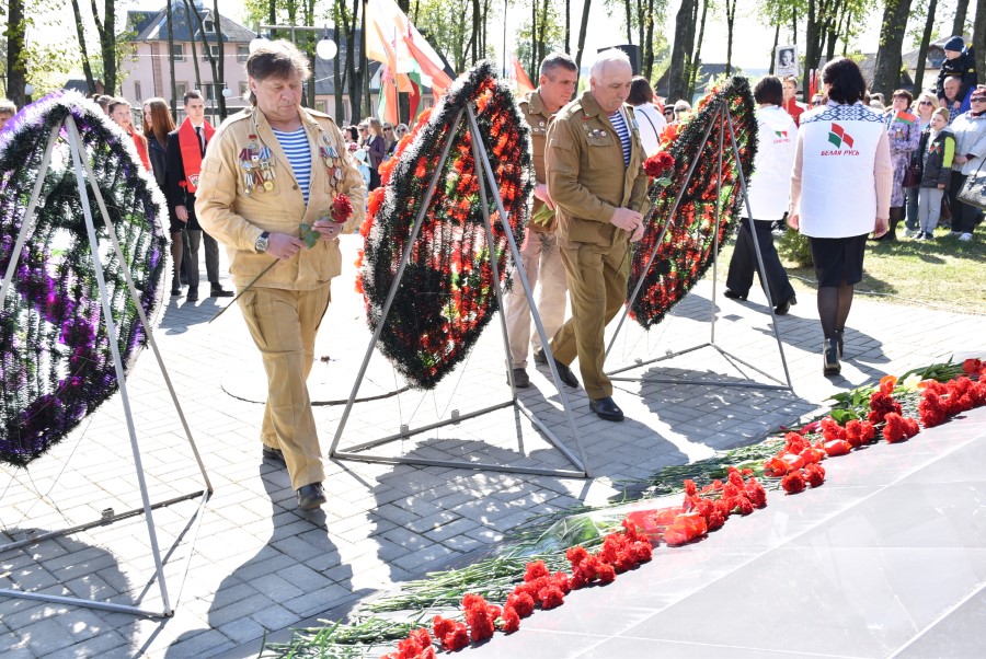 Традиционную минуту скорби по всем погибшим и залп в их честь меняет возложение к подножию памятника цветов – от райисполкома и районного Совета депутатов, от организаций и предприятий города, от общественных организаций, совета ветеранов, политических партий, молодежи и религиозных организаций… Нескончаемой рекой идут к подножию памятника березинцы – с венками, букетами… Это наша память и признательность за мир и чистое небо над головой.