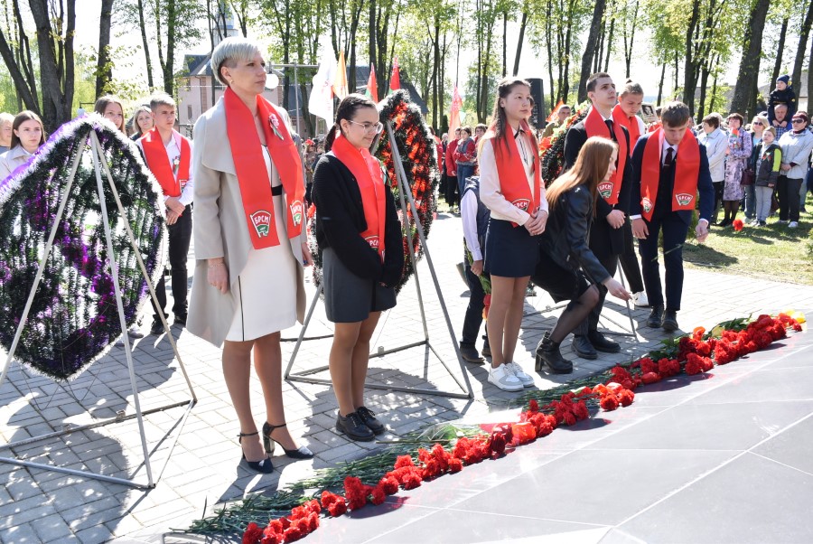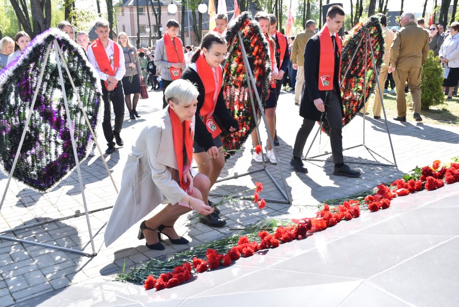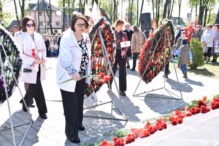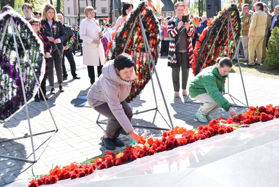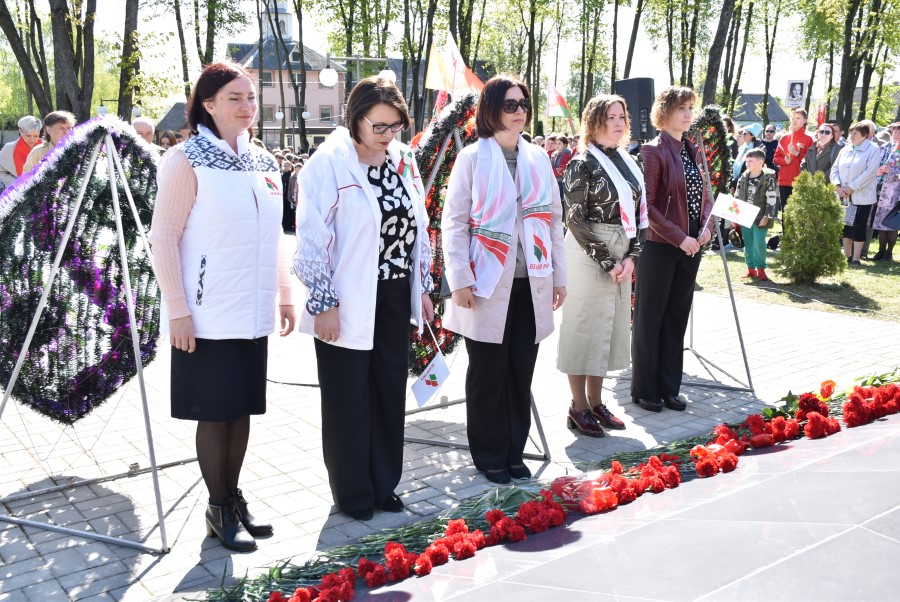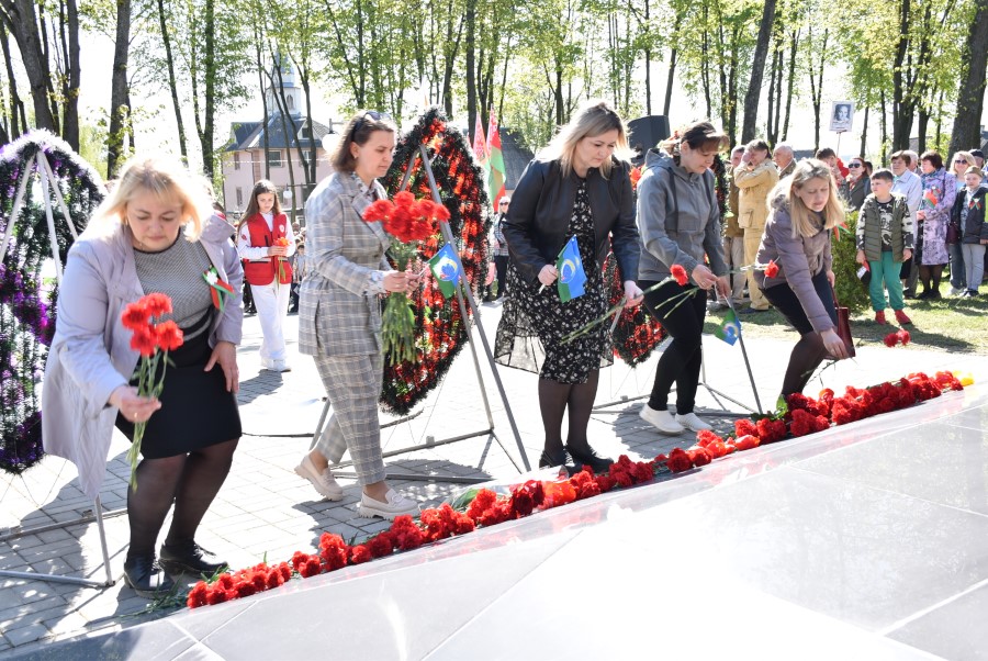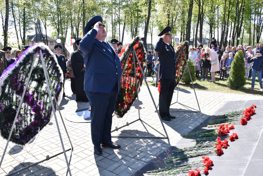 Традиционную минуту скорби по всем погибшим и залп в их честь меняет возложение к подножию памятника цветов – от райисполкома и районного Совета депутатов, от организаций и предприятий города, от общественных организаций, совета ветеранов, политических партий, молодежи и религиозных организаций… Нескончаемой рекой идут к подножию памятника березинцы – с венками, букетами… Это наша память и признательность за мир и чистое небо над головой.