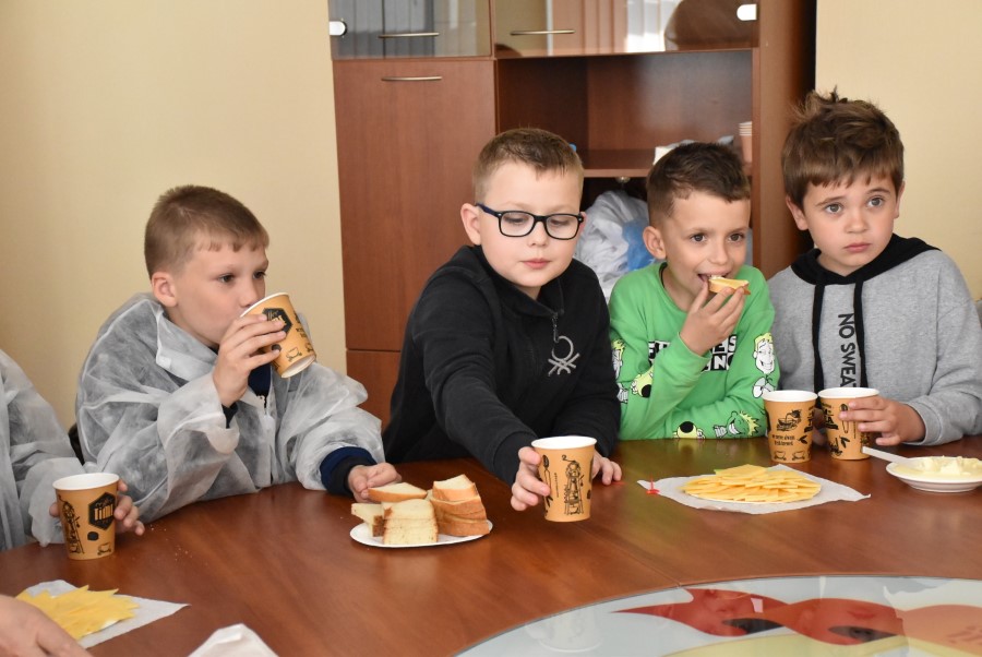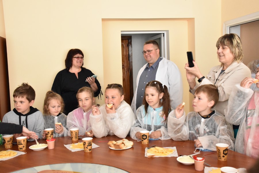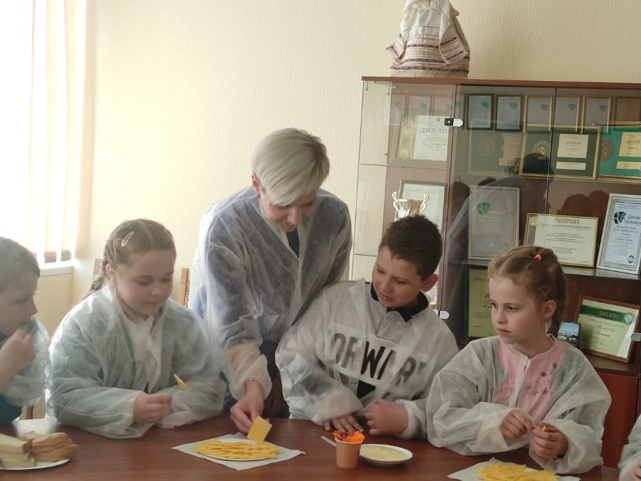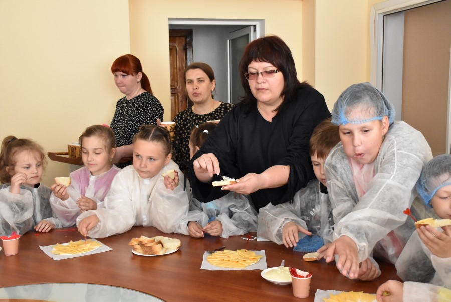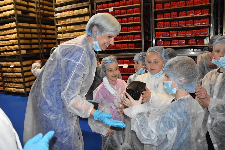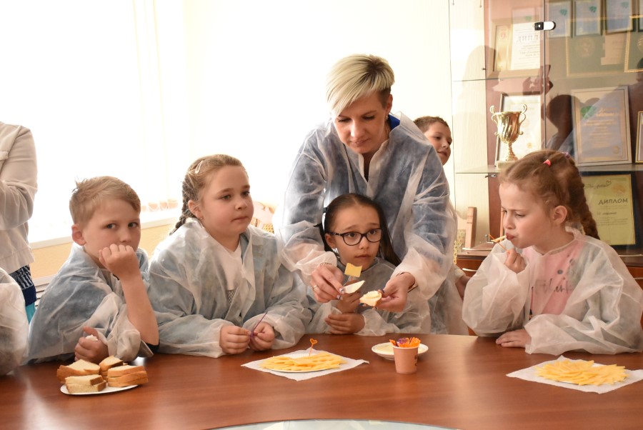 Было видно, что детишкам интересно посещать производство. Задавали и вопросы: сколько молока поступает, какие сыры производят.