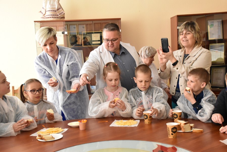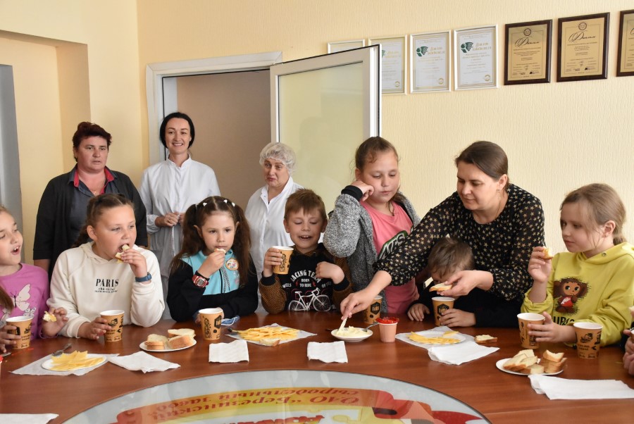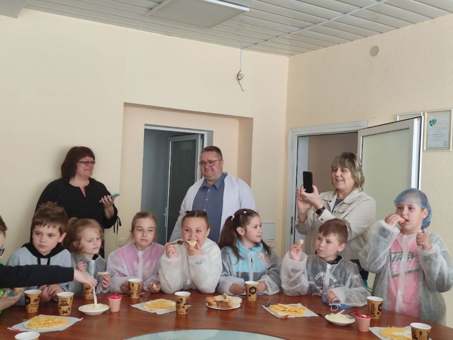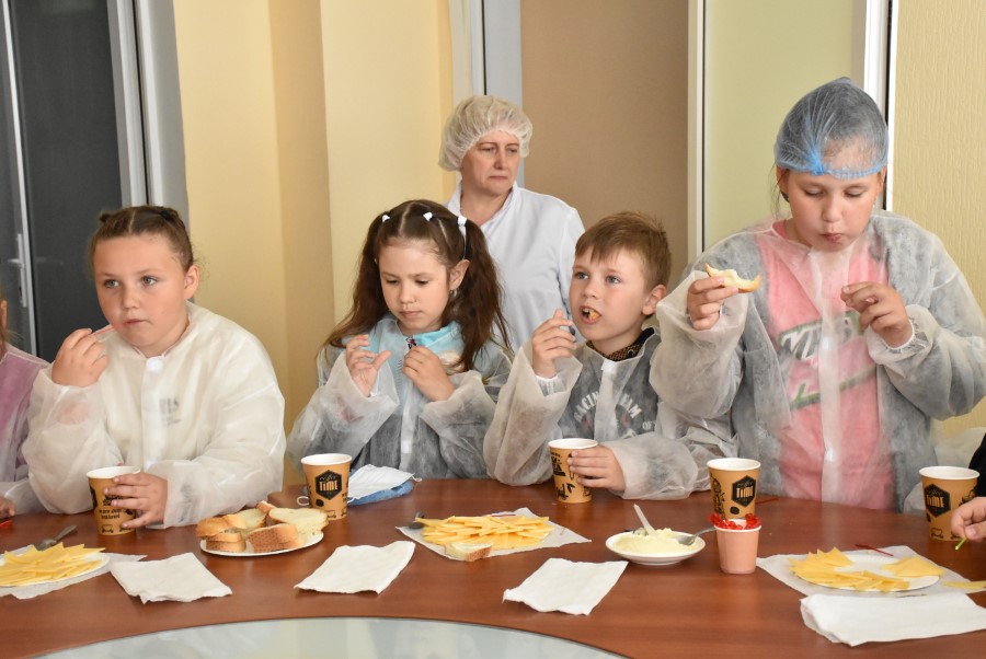Детишек провели по цехам, рассказали, показали, как делается масло, сыры!