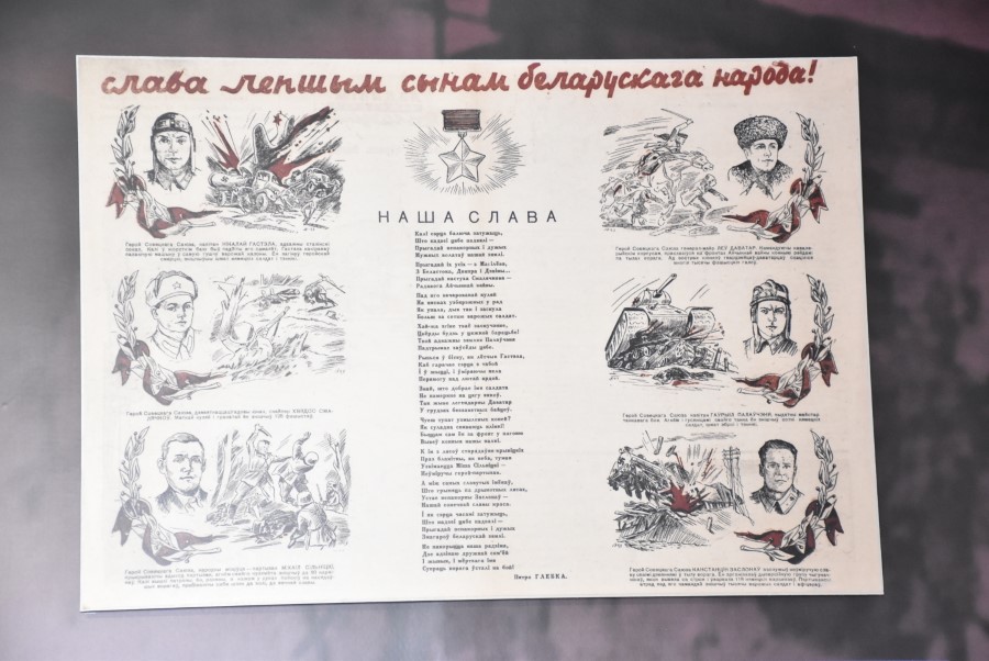 Таксама тут можна пазнаёміцца з гісторыяй вызвалення Беларусі ад нямецка-фашысцкіх захопнікаў, паглядзець баявыя ўзнагароды і ваенную зброю, па карце “прайсці ваеннымі дарогамі”. Наведвальнікі пачуюць пра гераізм свайго народа ў гады ваенных падзей. Таксама ў музеі прадстаўлена экспазіцыя аб генацыдзе беларускага народа ў гады Вялікай Айчыннай вайны.