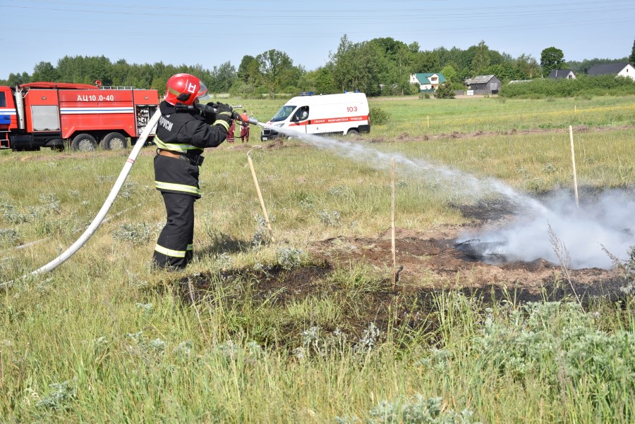 Вводная 2. От жителей д. Тростянка в центр оперативного управления Березинского РОЧС поступило сообщение о загорании сухой растительности на поле юго-восточнее д. Тростянка на площади 2 га. Горение распространилось на расположенный вблизи лесной массив. Происходит горение леса на площади 4 га, огонь распространяется в восточном направлении (находится КЗС и ферма ОАО «Березинский райагросервис», ул. Зеленая, г. Березино. В ходе принятия мер по ликвидации пала сухой растительности получил ожоги 2-3 степени работник фермы ОАО «Березинский райагросервис».