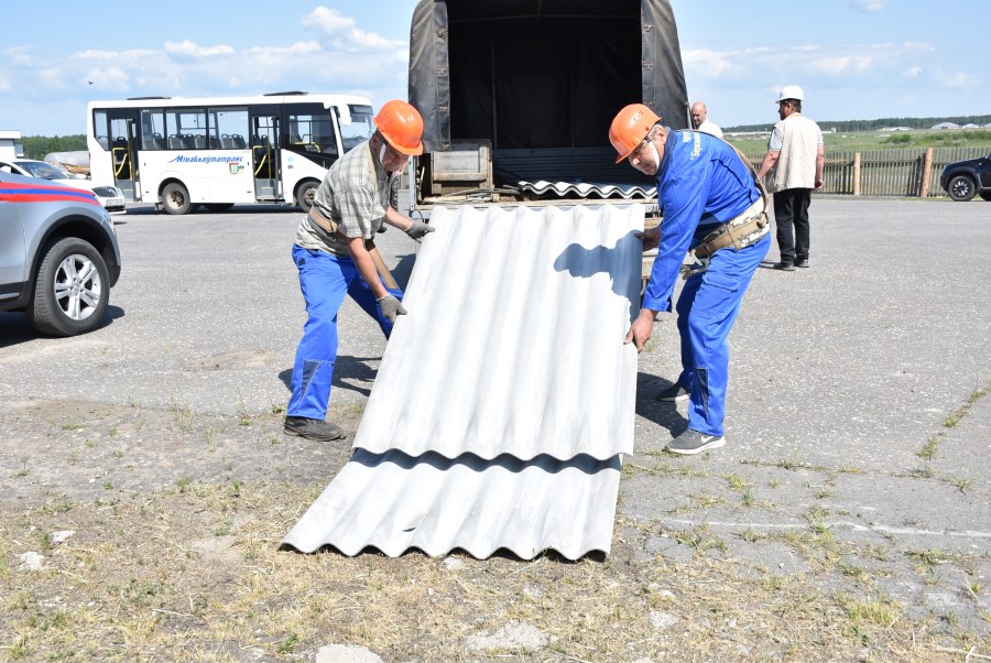 Д. Тростянка, ферма. Порывами ветра на здании фермы сорвана шиферная кровля на площади 20 м2.
