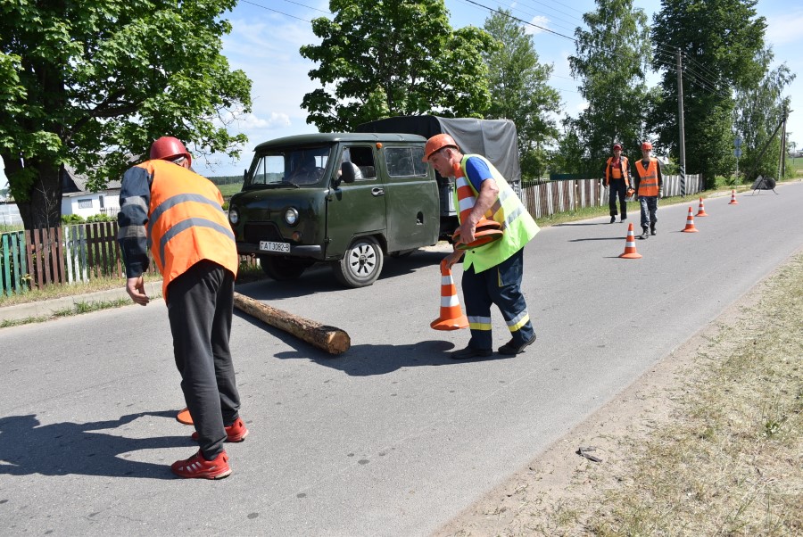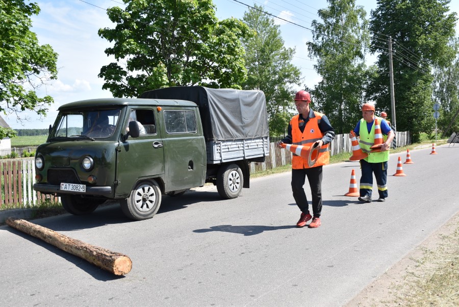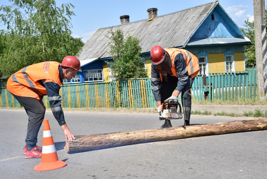 B результате сильных порывов ветра произошло падение деревьев на дорогу в д. Тростянка, одно из деревьев упало на автомобиль, в котором оказался заблокированным человек.