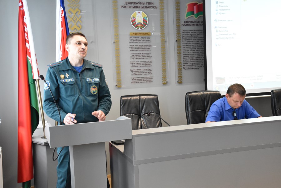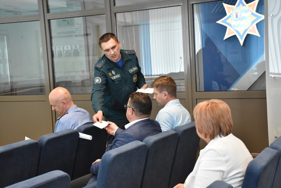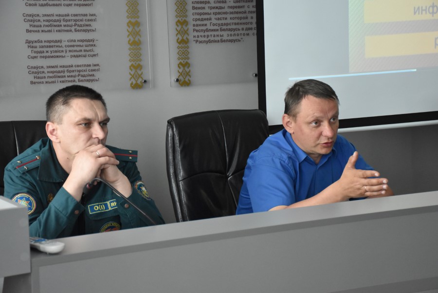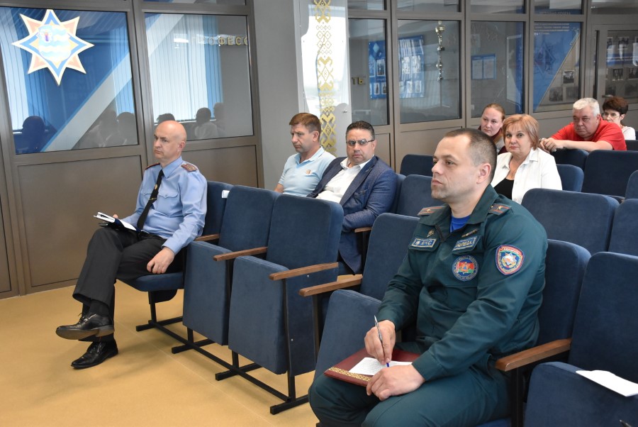 Проходит теоретическая отработка вводных с учётом чрезвычайных ситуаций, характерных для Березинского района, отработка навыков в работе руководящего и командно-начальствующего состава ГСЧС и ГО района и подведение итогов.