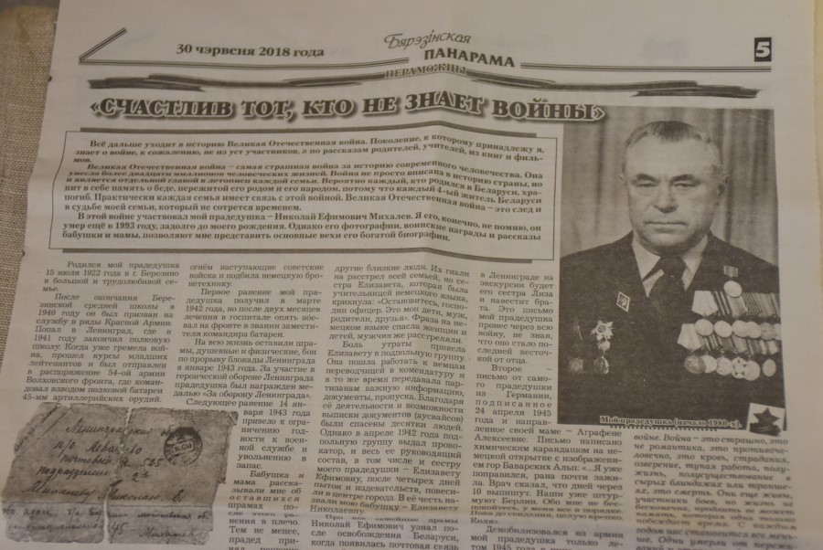 Открытие выставочного патриотического проекта "СЛЕД ВОЙНЫ В МОЕЙ СЕМЬЕ" в Березинском районном центре ремёсел.