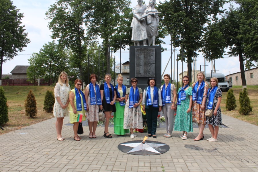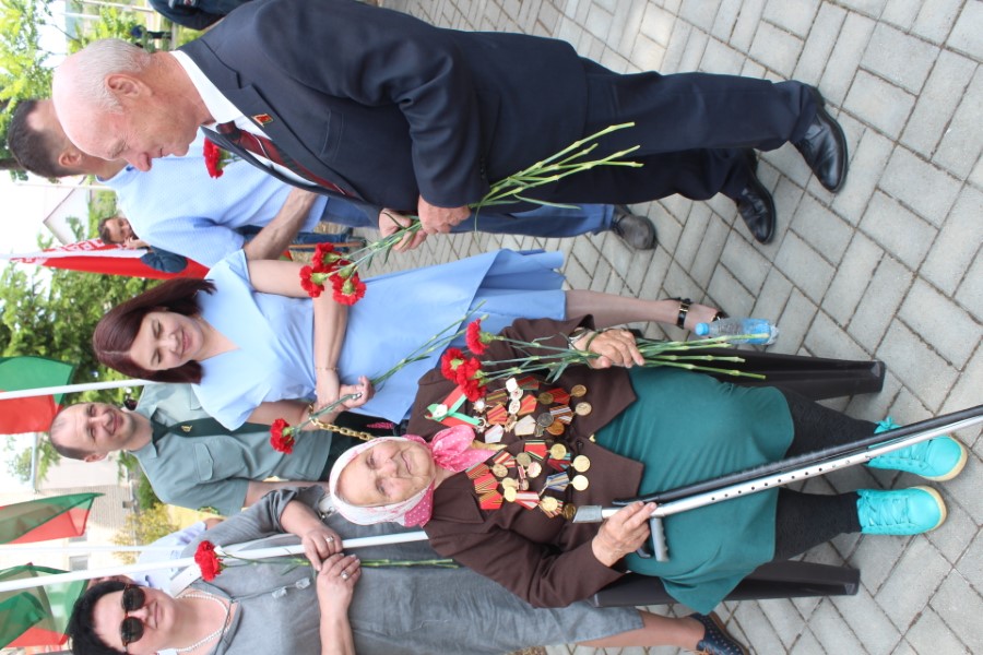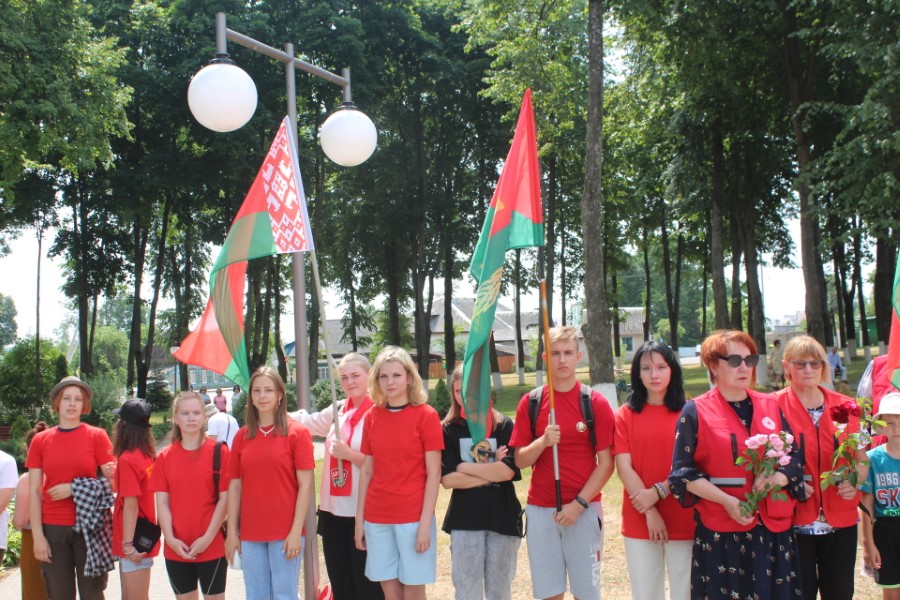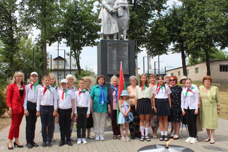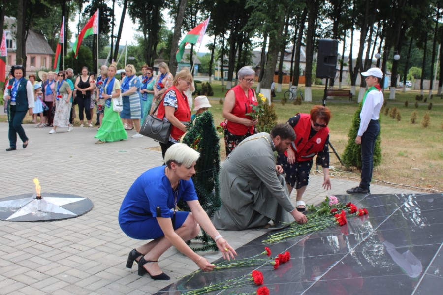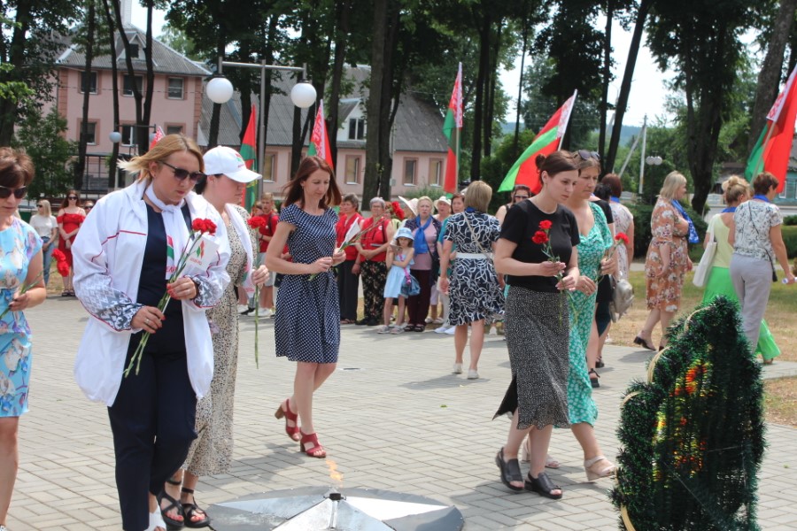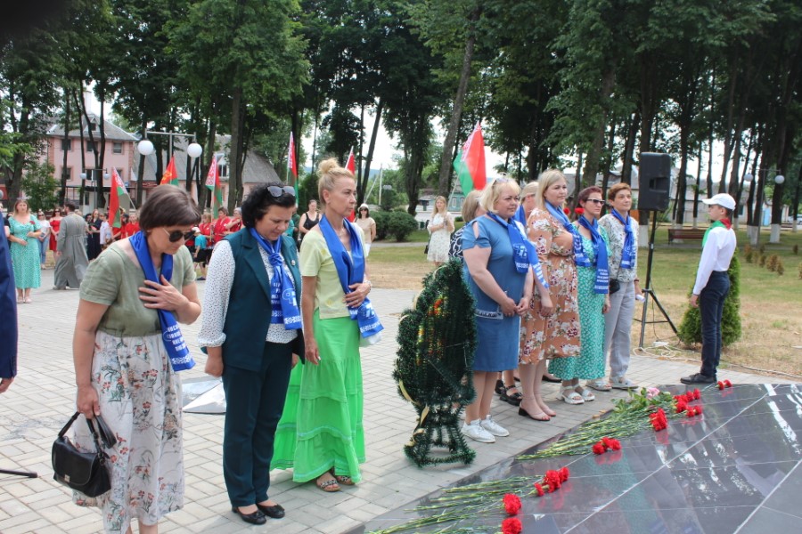 Затем к подножию монумента легли цветы – от районного исполнительного комитета и районного Совета депутатов, от политических партий, общественных объединений, представителей трудовых коллективов, молодежи. Среди возлагавших цветы была и последняя участница Великой Отечественной войны, жительница города Березино София Стасевич.