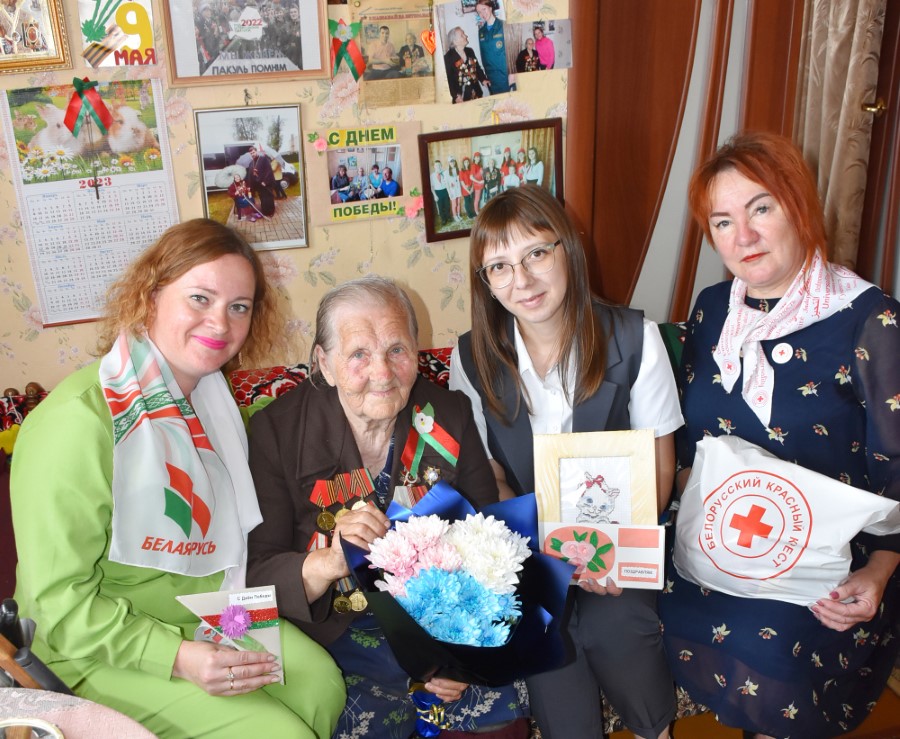 З самымі цёплымі, шчырымі словамі віншаванняў напярэдадні Дня Незалежнасці Рэспублікі Беларусь завіталі да ветэрана Вялікай Айчыннай вайны Сафіі Стасевіч, тылавіка Ганны Собаль і былога вязня Паліны Шаўцовай начальнік упраўлення па працы, занятасці і сацыяльнай абароне насельніцтва Бярэзінскага райвыканкама Вераніка Джігера, старшыня раённай агранізацыі “Чырвоны Крыж” Ірына Дубовік і намеснік дырэктара Бярэзінскага тэрытарыяльнага цэнтра абслугоўвання насельніцтва, прадстаўнік раённай арганізацыі “Белая Русь” Алеся Ермакова.