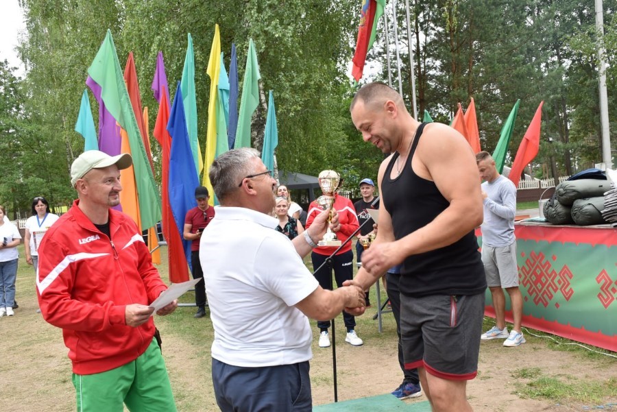 И третье место в районном турслете - команда ТП "Березинское", второе - РОЧС, и первое - команда управления по образованию, спорту и туризму. Смотрите также: • Фотофакт: соревнования по волейболу • Фотофакт: перетягивание каната