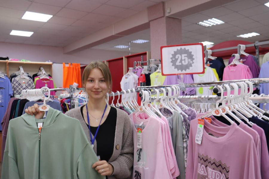 Гэтымі днямі ў магазіне існавала скідка на асобныя тавары да 50%. Але гэта не мяжа, неўзабаве тут аб’явяць пра скідку ў 70%, так што сачыце за рэкламай. Абнаўляецца і асартымент. На прадпрыемстве прыступілі да шыцця фірменных джынсаў-штаноў і джынсавых куртак.
