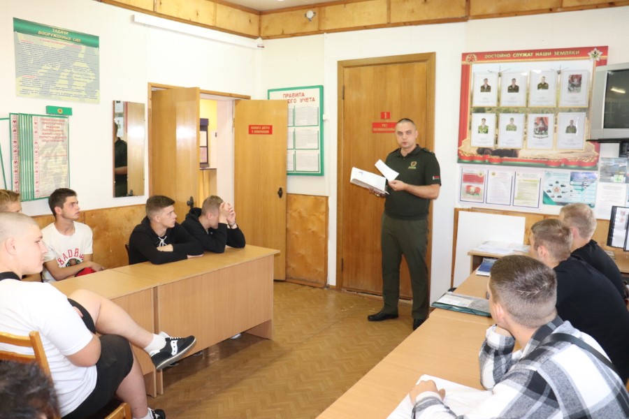 Будущие воины собрались в военкомате, где сверили у специалистов личные данные, уточнили семейное положение, выслушали приветственное слово начальника обособленной группы Березинского района – майора Максима Клюева, получили памятки со списком врачебных кабинетов поликлиники Березинской ЦРБ, в которые придется заглянуть, задали проблемные вопросы по прохождению медкомиссии.