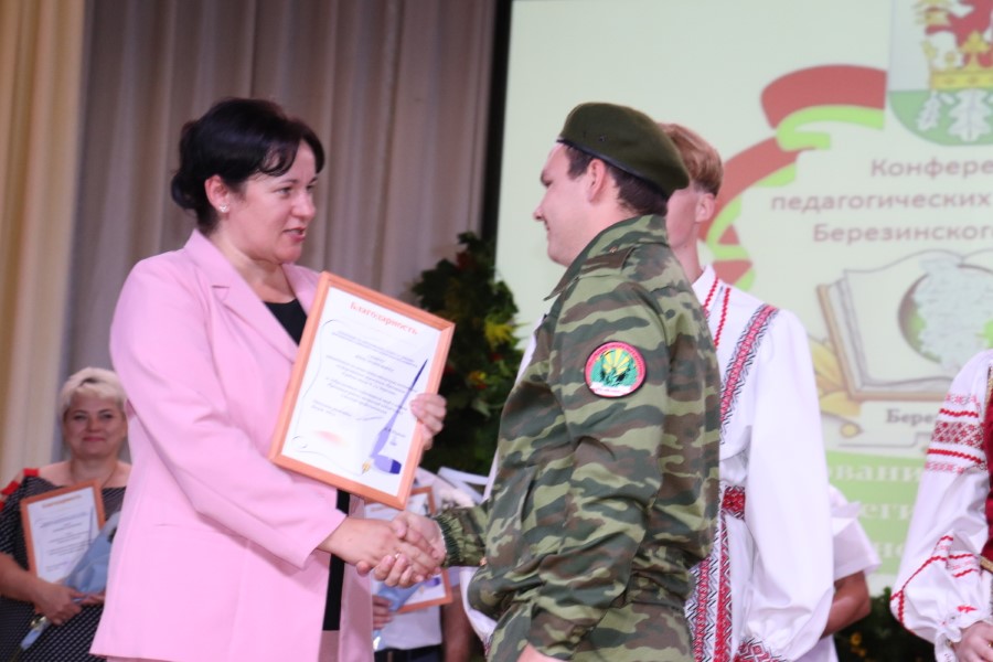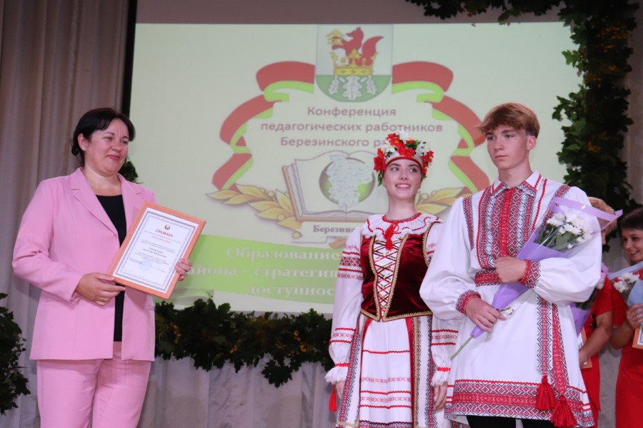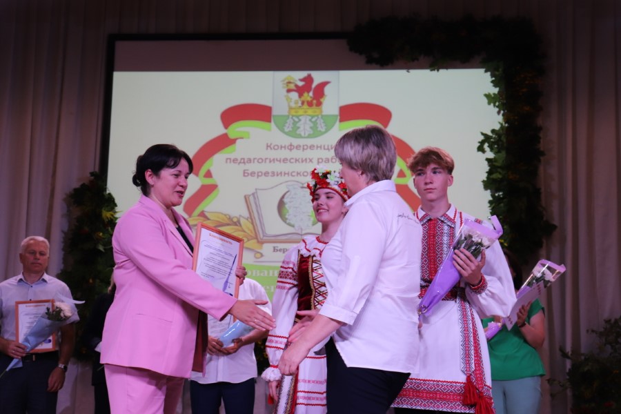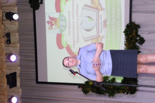 Но не только с приятной миссией награждения вышла на сцену РЦК Алеся Алексеевна. Она также предложила присутствующим ознакомиться с докладом на тему «Образование Березинского района – стратегия будущего: развитие, доступность, качество», в котором определила основные направления педагогической деятельности на следующий учебный год.